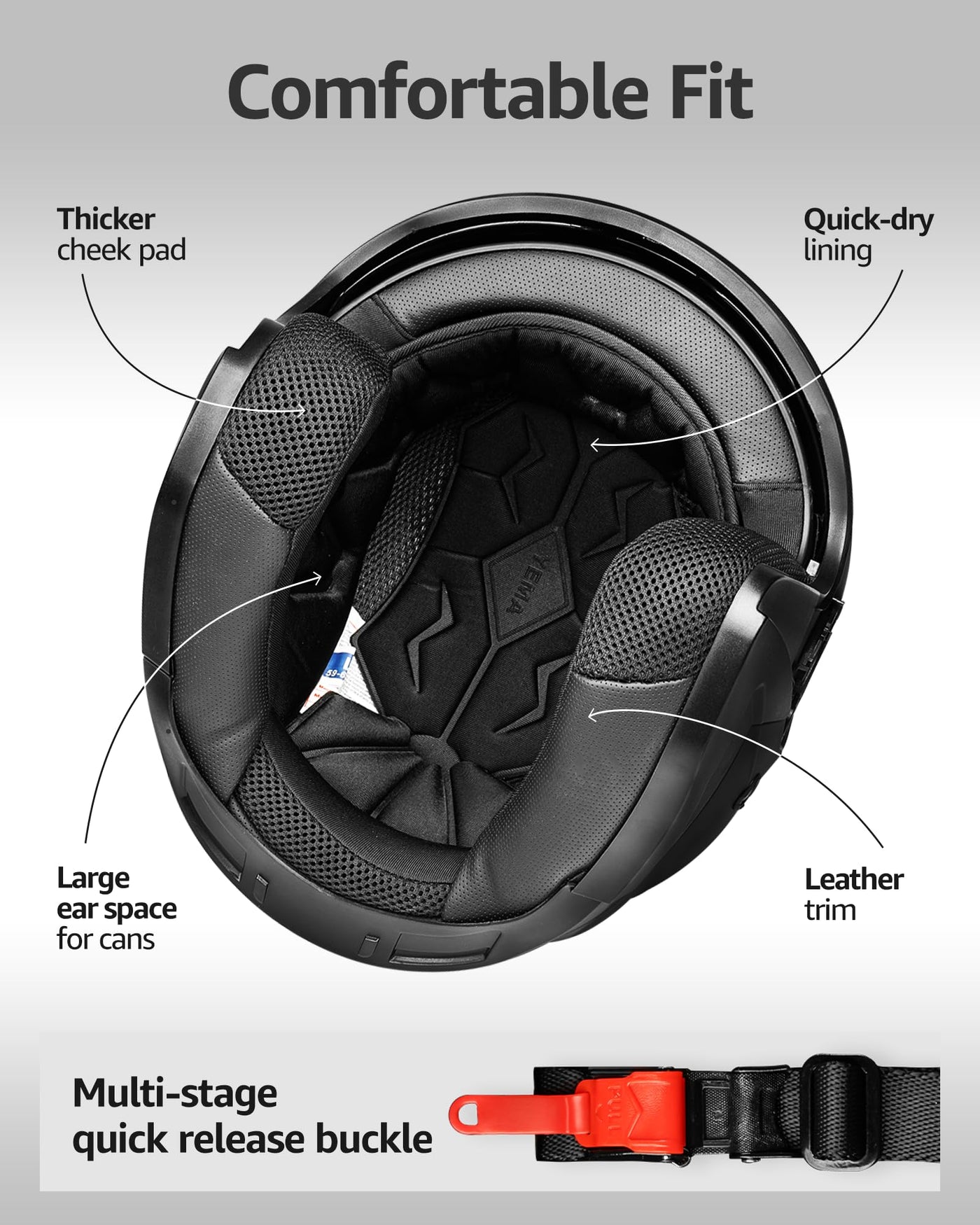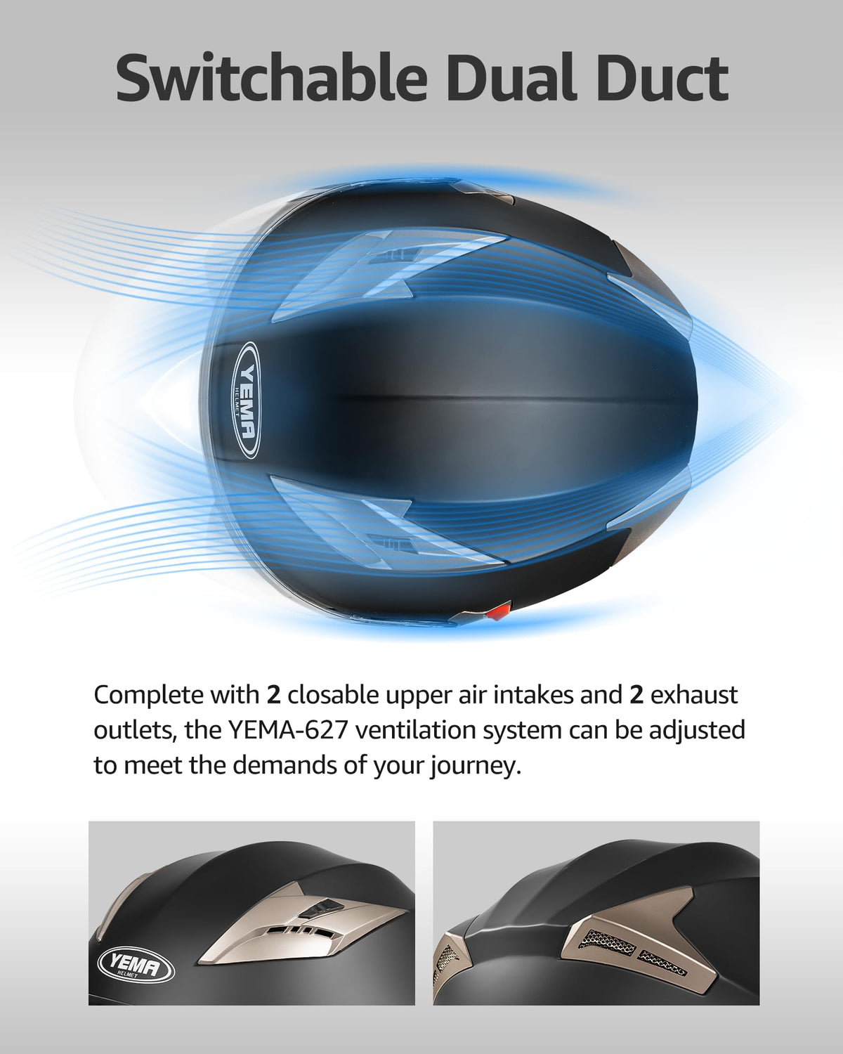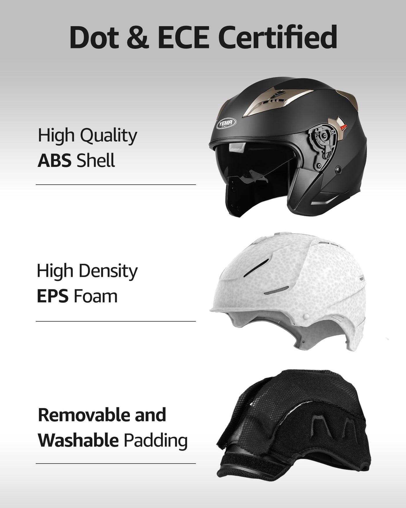 Yema Helmet Unisex Motorcycle Open Face Dot Approved Ym-627 Motorbike Moped Jet Bobber Pilot Crash Chopper 3/4 Half Helmet With