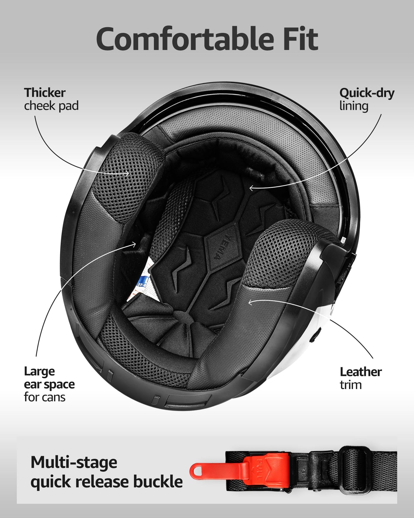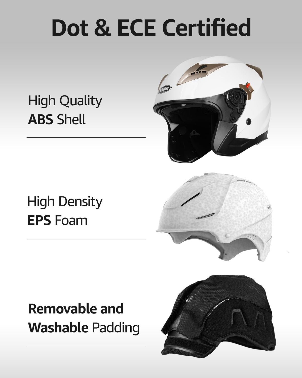 Yema Open Face Motorcycle Helmets, Dot Approved 3/4 Moped Helmet Dual Visor Quick Release Buckle, Helmets For Adults Motorcycle
