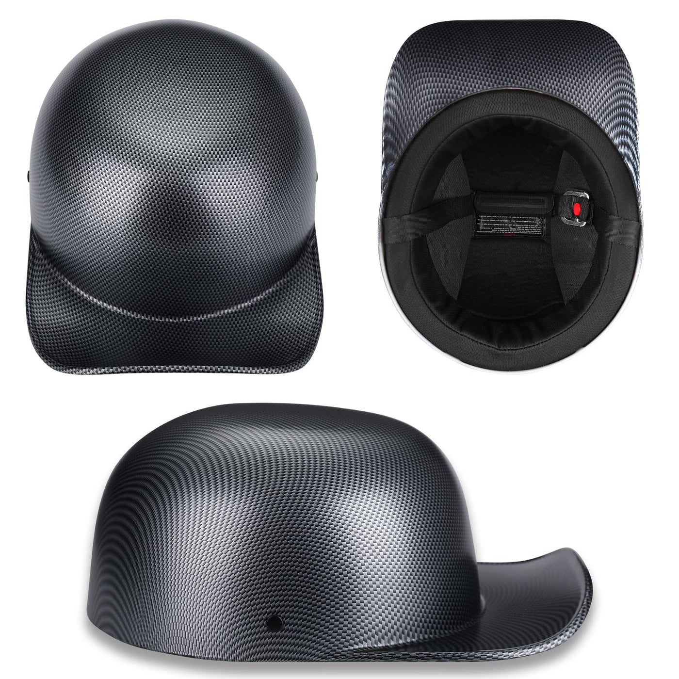 Yesmotor Baseball Motorcycle Helmet Half Cap For Bike Cruiser Chopper Moped Scooter- Dot Approved (Carbon Fiber, M)