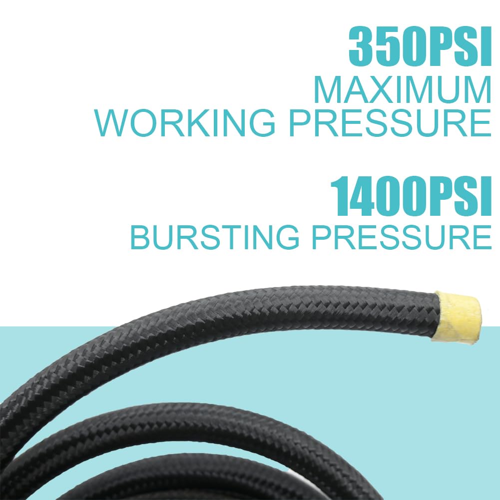 ?Inner Diameter: 22.22 MM (0.86 INCH) ; Outer Diameter: 29.38 MM (1.15 INCH) ; Length: 3 Meter / 10 ft | ?HIGH QUALITY MATERIAL - The 16AN power steering hose covered with high quality woven Nylon and 304 stainless steel braided + CPE synthetic rubber to enhance flexibility and give a cool racing appearance. | ?HIGH WORKING PRESSURE - The 16AN transmission cooler line can stand-40