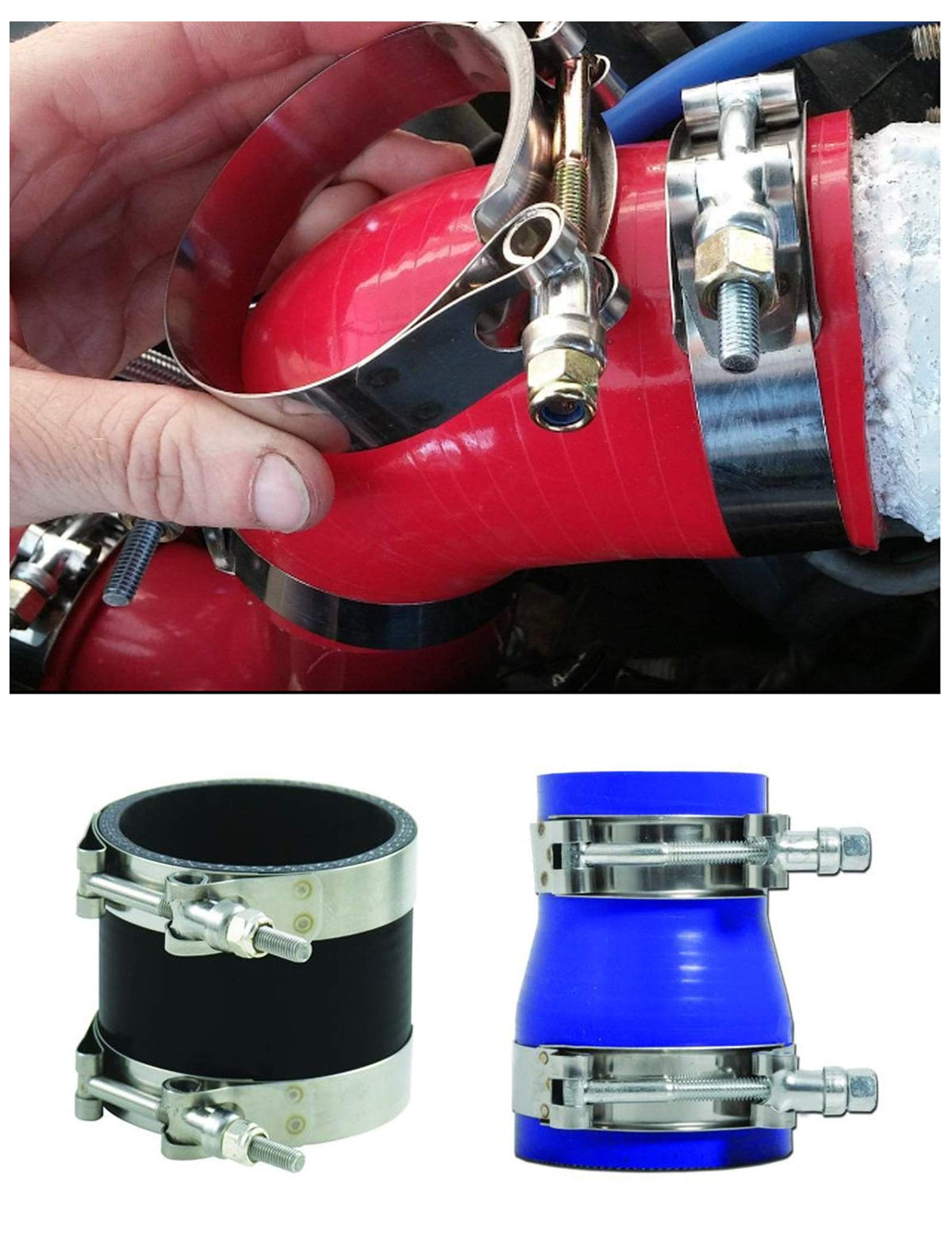 ?Description: 1. T-Bolt clamps provide uniform sealing pressure for a positive, reliable seal which are frequently installed on coolant and air-intake systems for construction, truck, and bus engines. Through the use of bolts and studs design, T-Clamps can be implemented a much more tighter and durable hold for silicon couplers, rather than the normal screw design clamps. 2. 100% Brand New 3. Clamp Range: 41 mm-46 mm or 1.61'-1.81' 4. Material: 301ss Stainless Steel 5. Band Width: 19 mm or 0.75' 6. Band Thickness: 0.6 mm 7. This T-Bolt Clamp fits for 1 1/4' or 32 mm inner diameter silicone hose fits for 1.65 or 42 mm outer diameter silicone hose