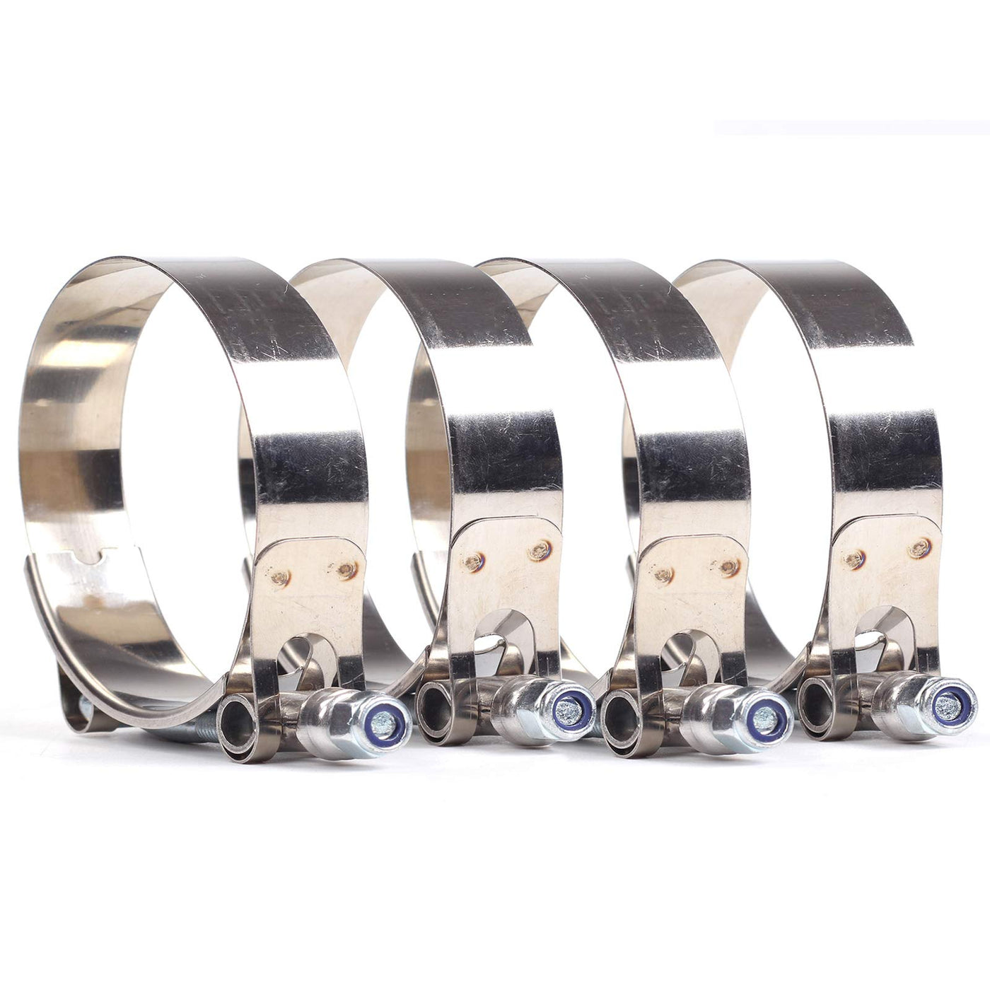 Q: What is the clamp range for the 4PCS Stainless Steel T-Bolt Clamps?A: The clamp range for these T-Bolt clamps is 41 mm to 46 mm, which is equivalent to approximately 1.61 inches to 1.81 inches.