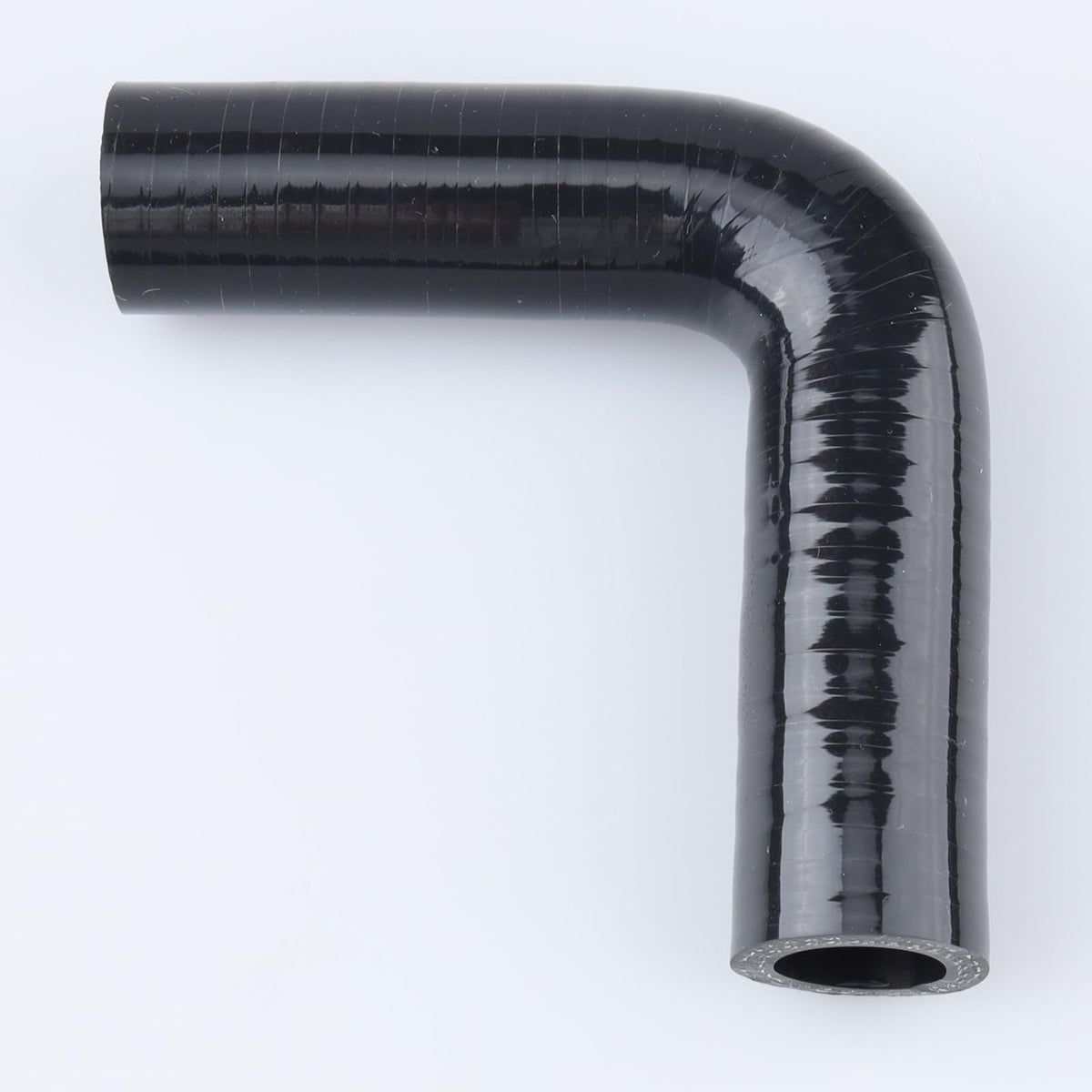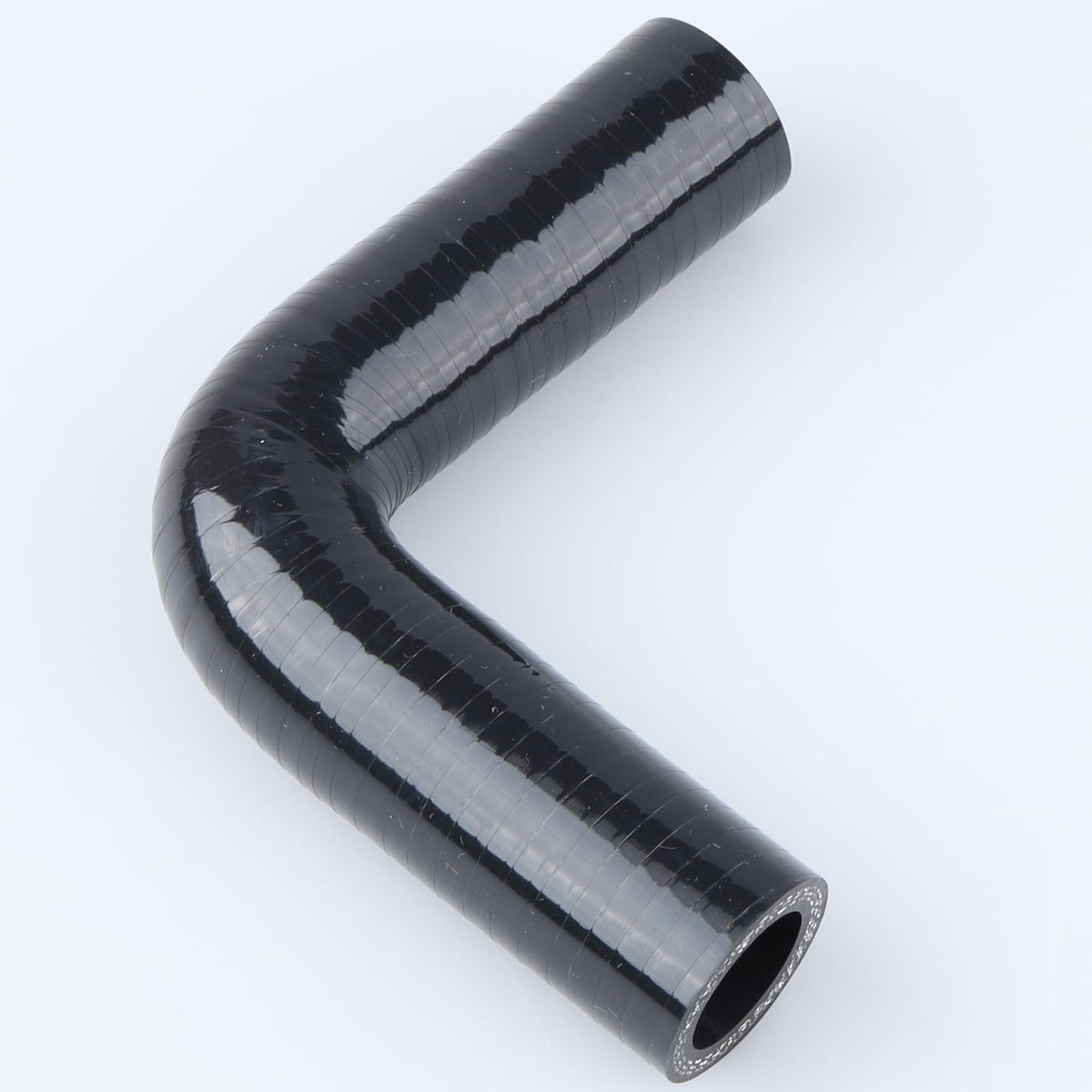 High Temperature 3-Ply Reinforced 90 Degree Elbow Coupler Silicone Hose, knitted premium polyester fabric with high temperature silicone rubber, for which meet or exceed SAEJ20 Standard and is engineered for extreme temperature and various pressure ranges where high performance levels are required. The Silicone Hose is commonly used for joining two hard pipes while reducing the possibility of connections coming apart or having your hard pipes or other equipment break. The silicone hoses are used by professionals in industries such as high performance racing vehicles, commercial truck and bus, Marine, agricultural and off highway vehicles, turbo diesel, food and beverage, and general manufacturing industries. Temperature Range: -76F to 374F (-60C to 190C). Silicone hose is compatible with water or anti-freeze such as coolant. Silicone hose is not compatible with fuel or oil.