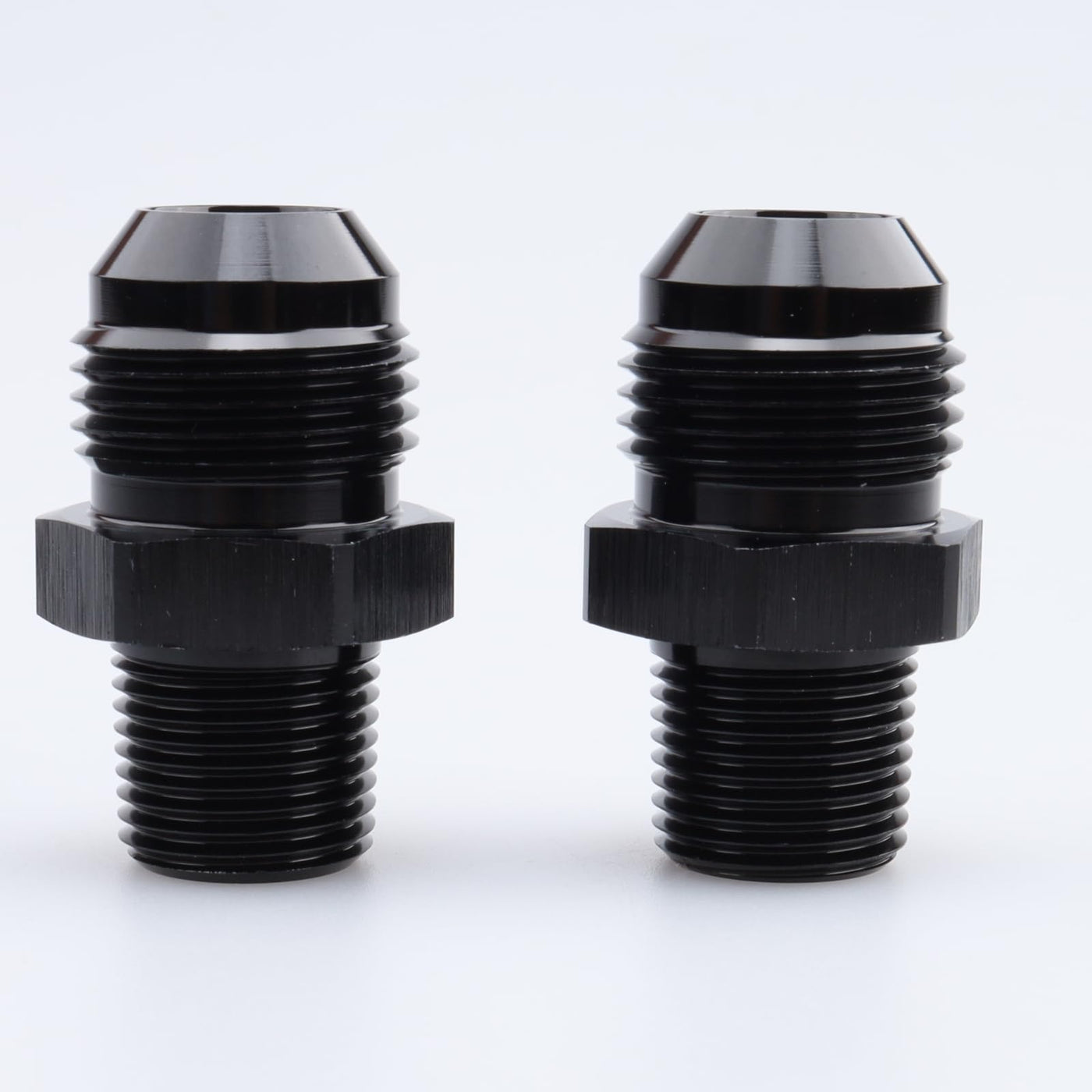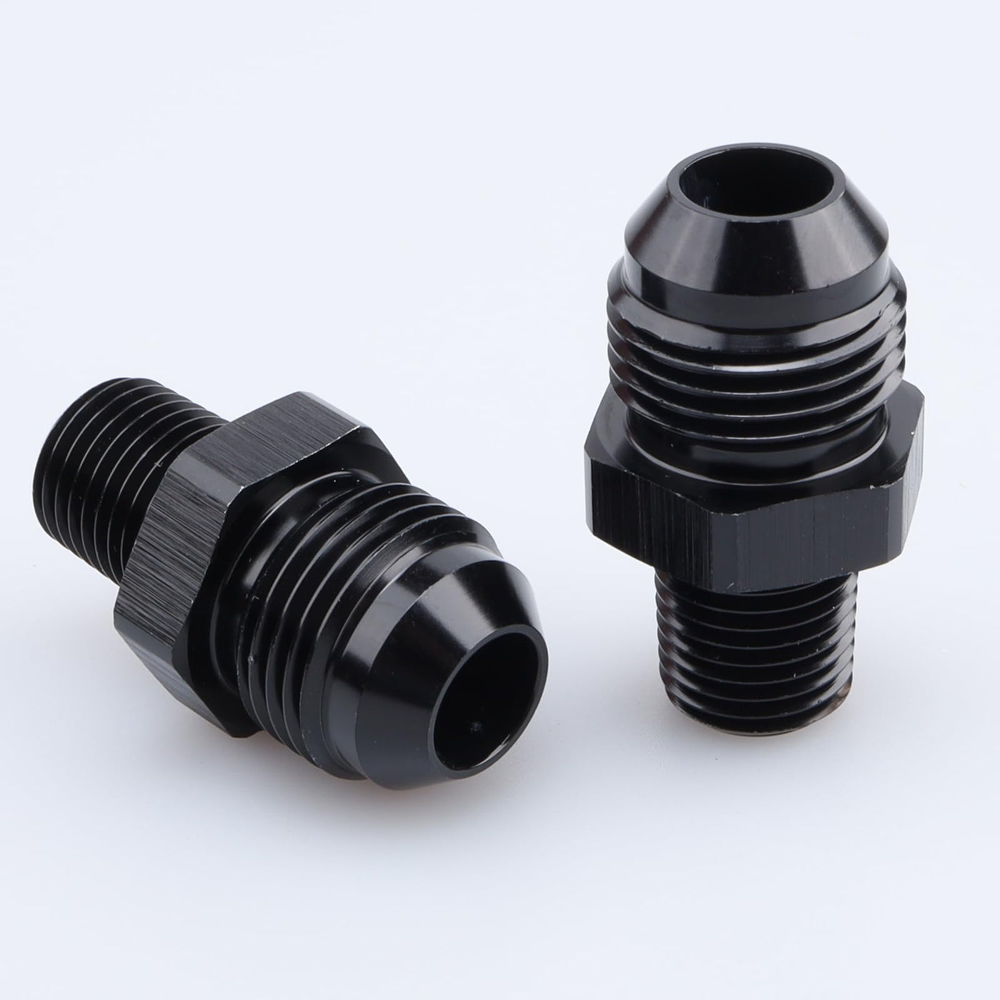 Ac Performance Male 1/4'' Npt To -8 An Flare Adapter Straight Aluminum Black, Pack Of 2