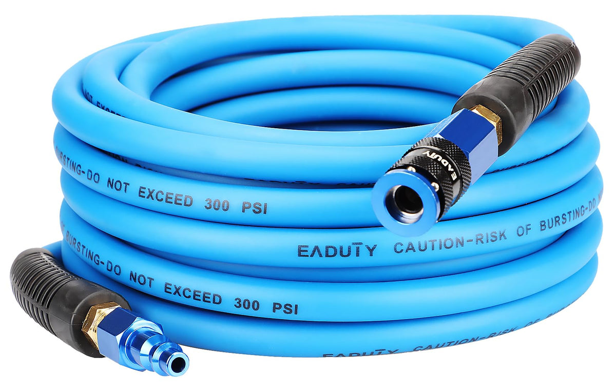 Q: How do I maintain and care for the EADUTY air hose?A: To maintain the EADUTY air hose, it is important to store it in a cool, dry place when not in use. Avoid exposing it to direct sunlight for prolonged periods, as this can degrade the material. Additionally, regularly check for any signs of wear or damage, and clean the hose with mild soap and water to prevent dirt buildup.