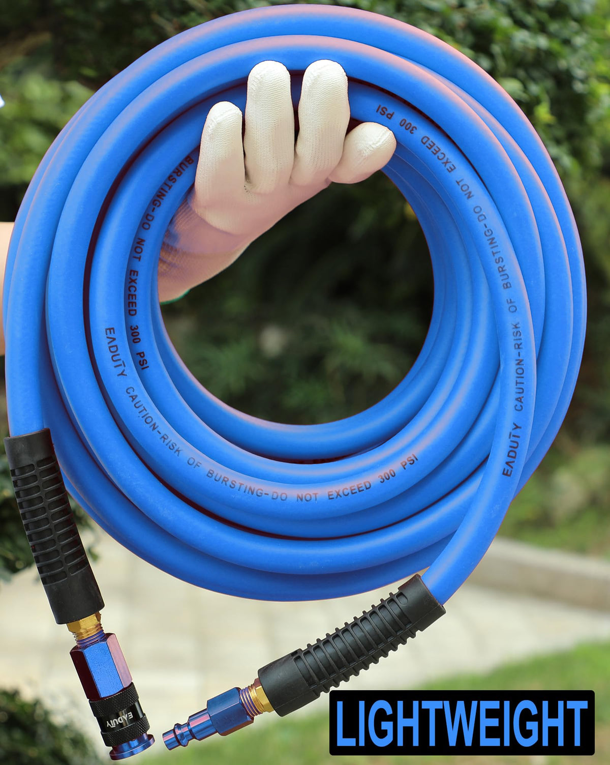 Eaduty Hybrid Air Hose 1/4 In. X 25 Ft, Lightweight, Flexible, Durable Air Compressor Hose With Aluminum Universal Quick Coupler And Industrial Plug, Blue