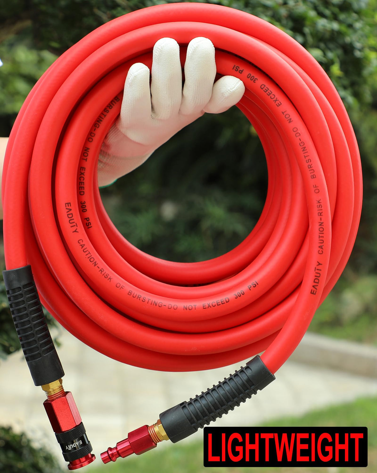 Eaduty Hybrid Air Hose 1/4 In. X 50 Ft, Lightweight, Flexible, Durable Air Compressor Hose With Aluminum Universal Quick Coupler And Industrial Plug, Red