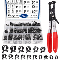 Eoppen 132Pcs 6-25Mm Spring Hose Clamps Assortment Kit With Swivel Flat Band Fuel Hose Clamp Plier - 16 Sizes Fuel Line Silicone