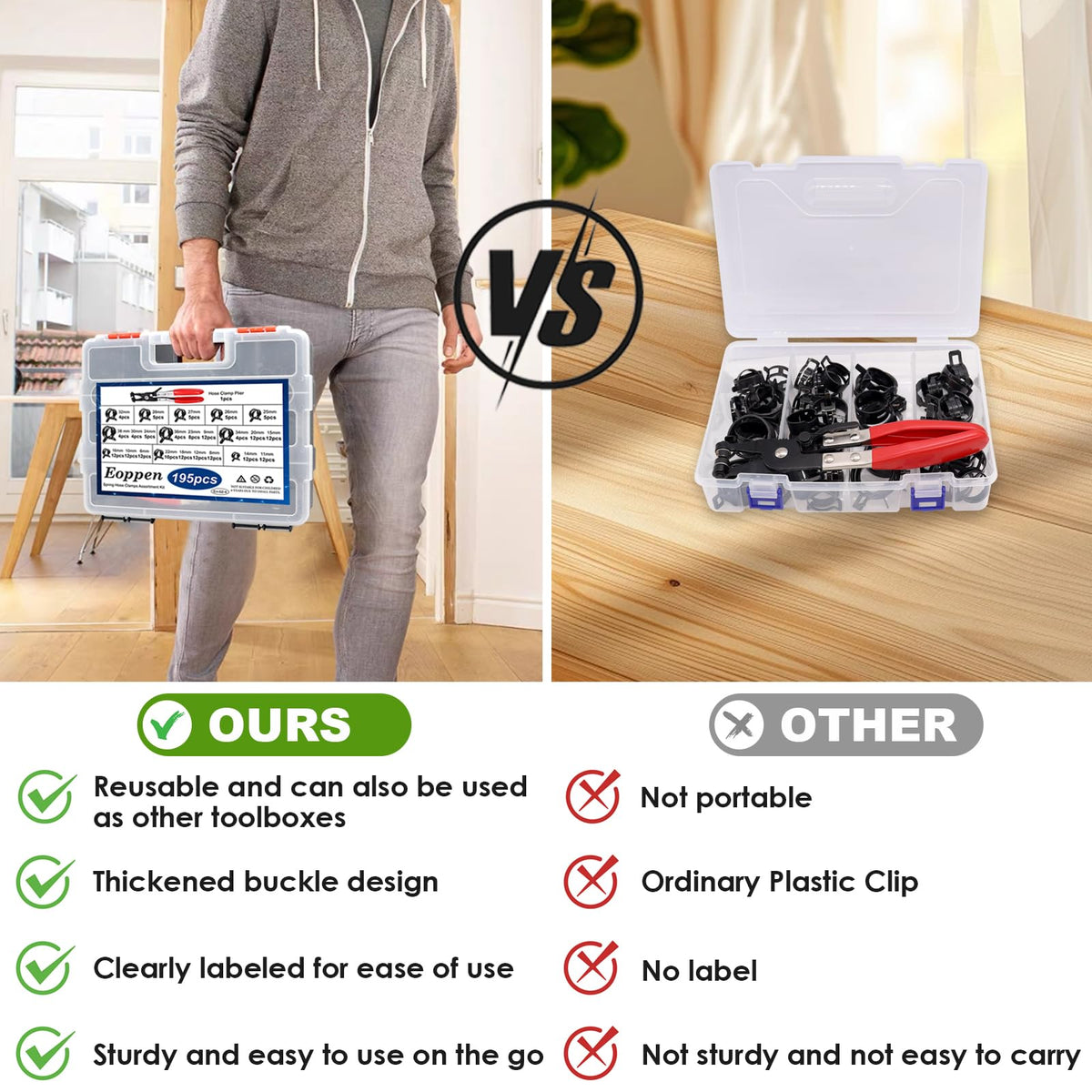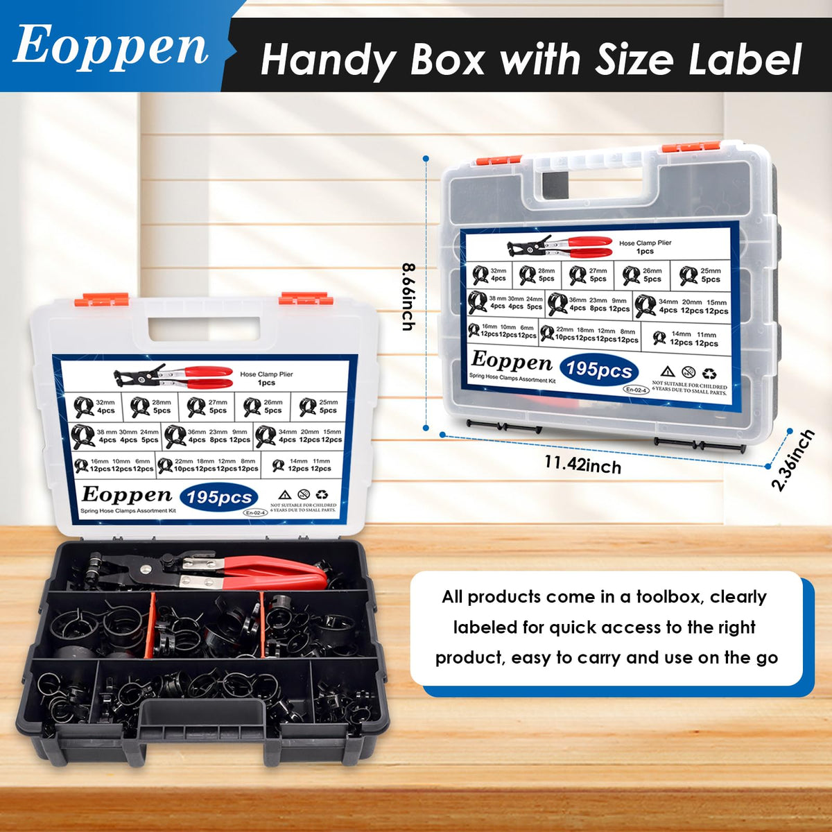 Eoppen 195Pcs 6-38Mm Spring Hose Clamps Assortment Kit With Swivel Flat Band Fuel Hose Clamp Plier - 23 Sizes Fuel Line Silicone