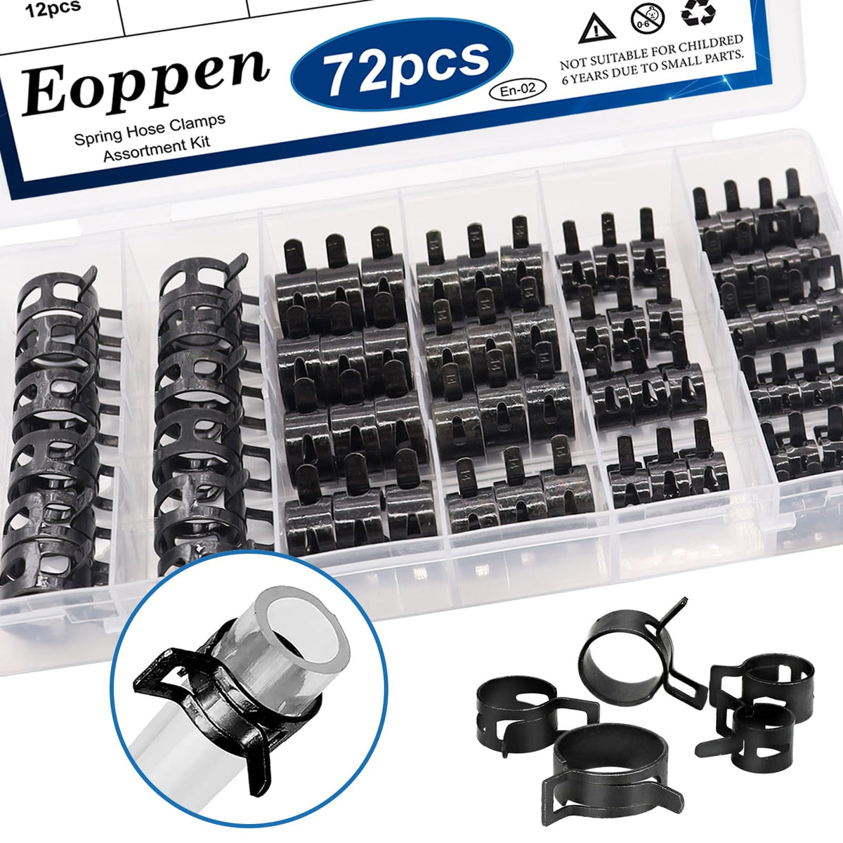 Eoppen 72Pcs Spring Hose Clamps Fuel Line Silicone Vacuum Hose Low Pressure Air Clamps & Sleeving Automotive Replacement Fastene