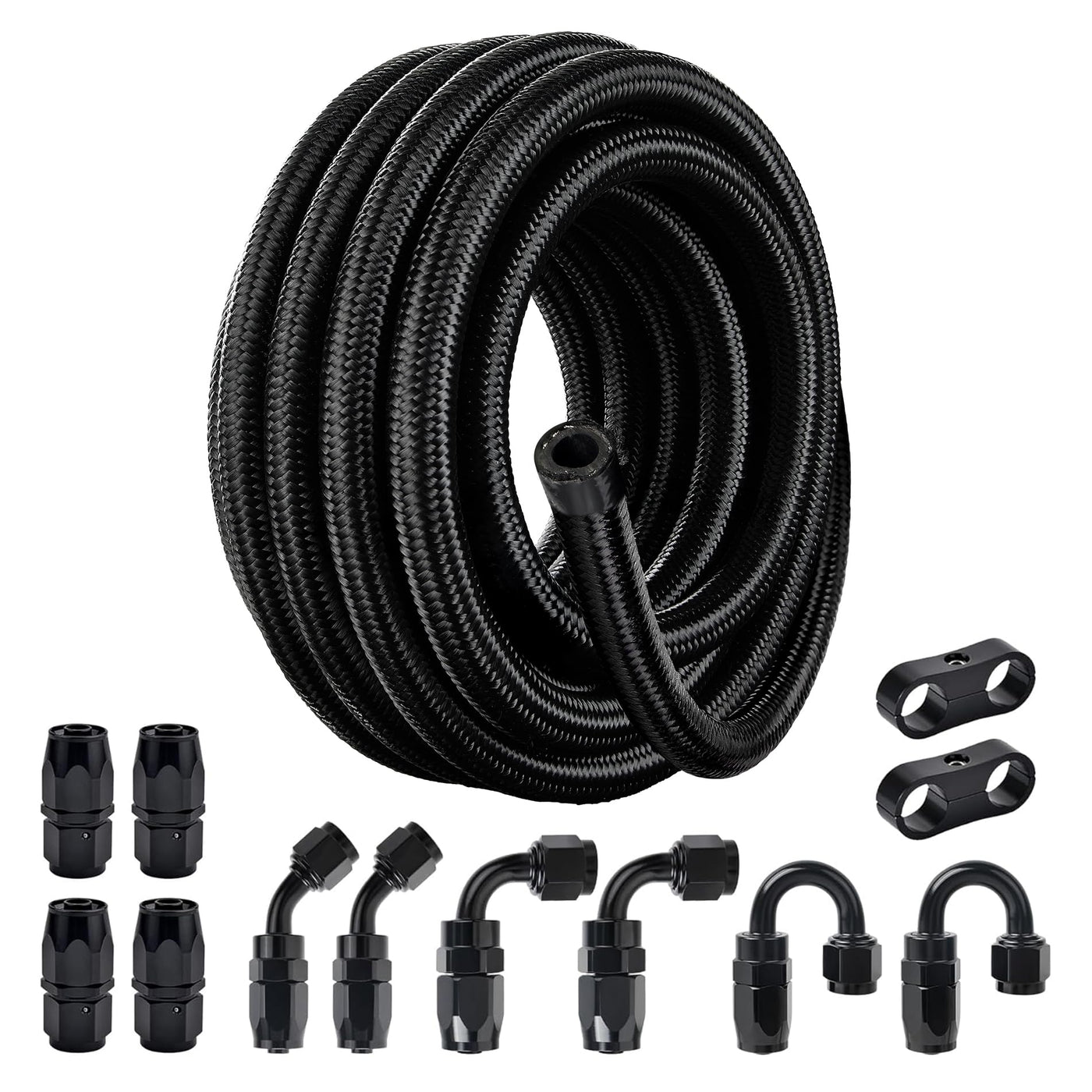 EVIL ENERGY 12AN Fuel Line Kit, 12AN Nylon Braided Fuel Line Hose Fitting Kit CPE 20FT Black