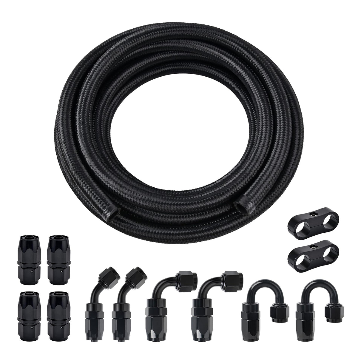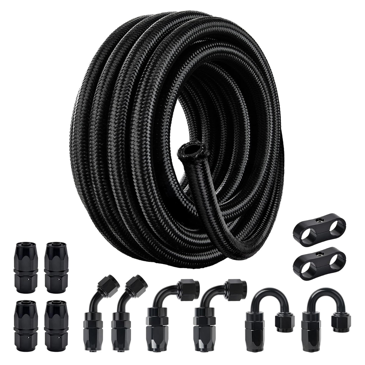 Q: How long is the fuel line included in the kit?A: The kit includes a 20-foot length of 6AN braided fuel line, which provides ample length for most installation needs.
