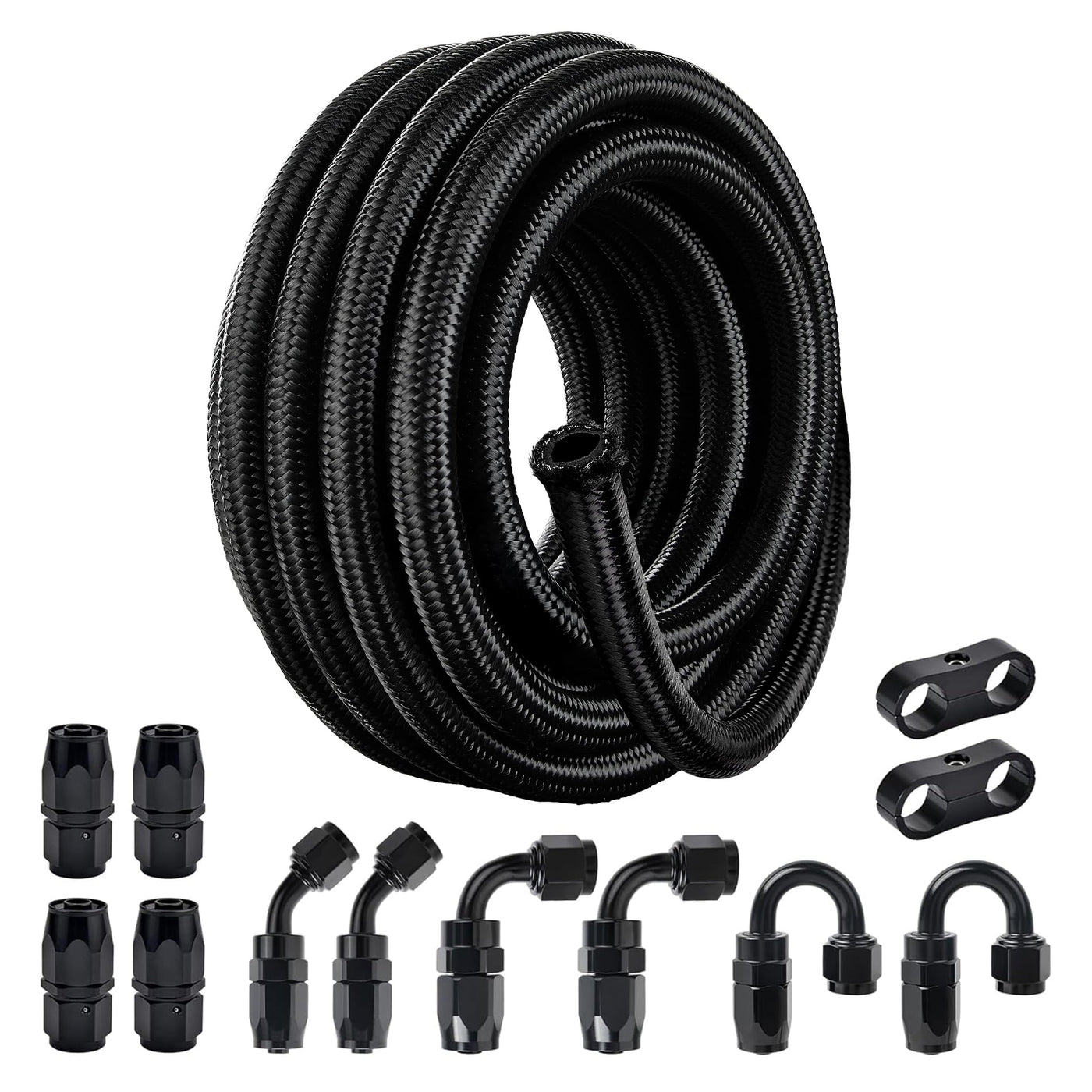 Evil Energy 6An Fuel Line Kit, 6An Nylon Braided Fuel Line Hose Fitting Kit Cpe 20Ft Black(0.34Inch Id)