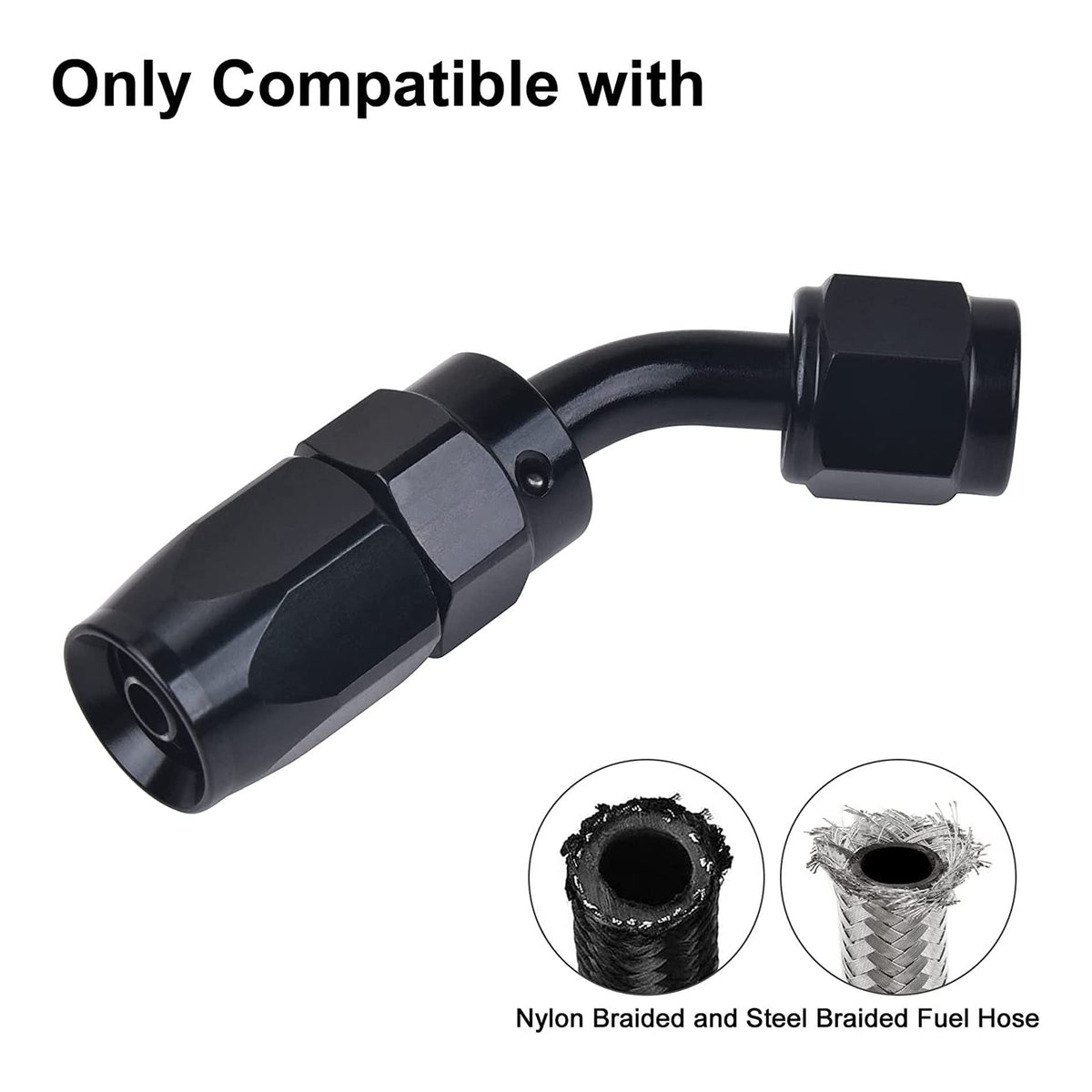 Q: Can this swivel fitting be used with any type of hose?A: This swivel fitting is specifically designed to work with stainless braided and nylon braided hoses, providing optimal performance in various applications.