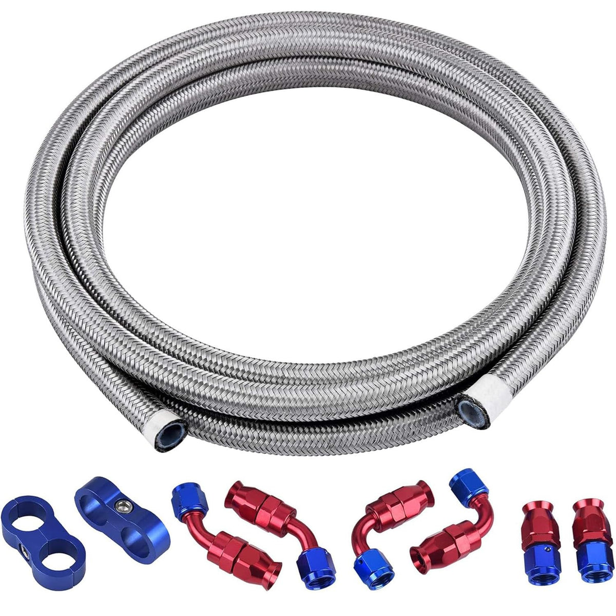 EVIL ENERGY 8AN PTFE Fuel Line Fitting Kit,E85 Stainless Steel Braided Fuel Hose 10FT(0.394Inch ID)
