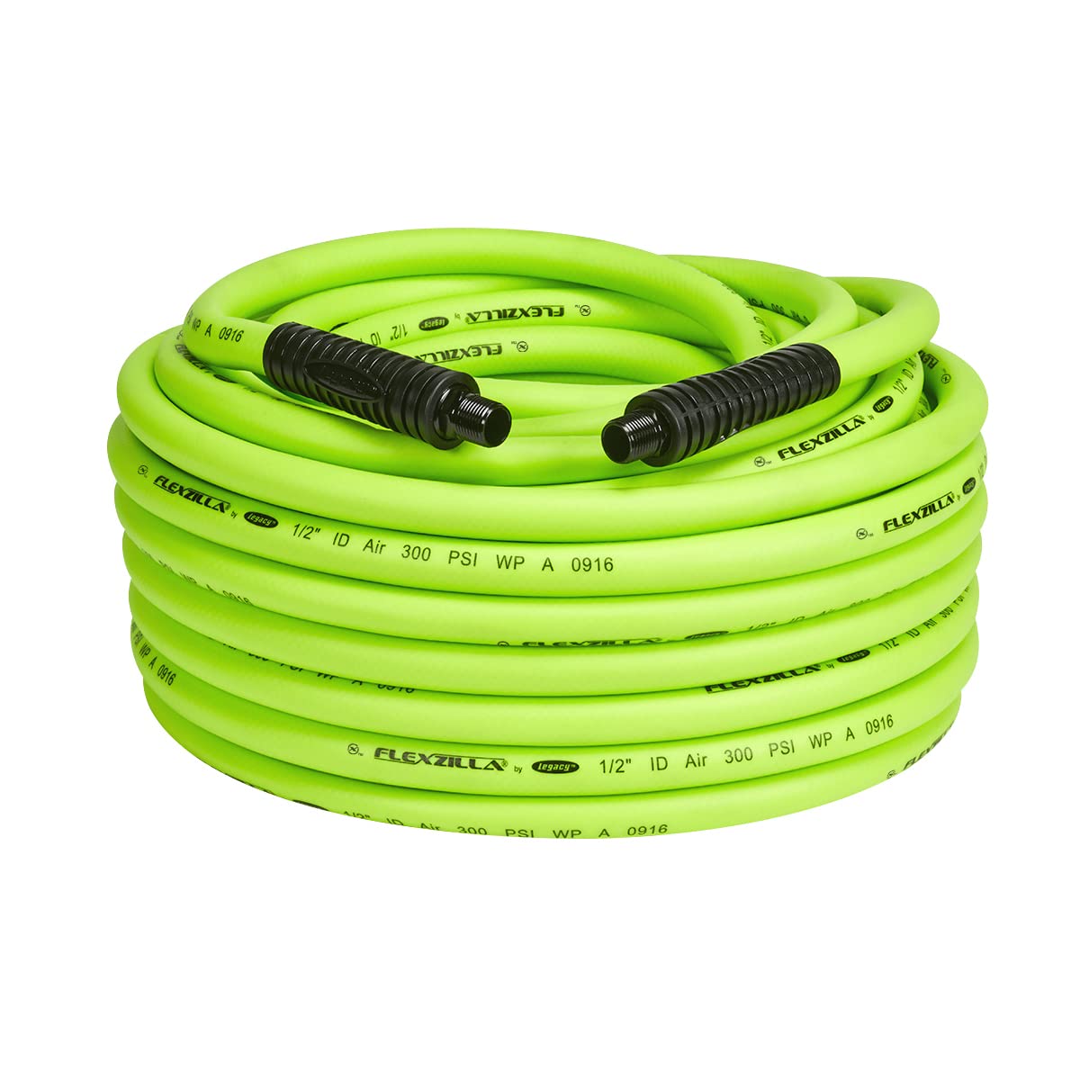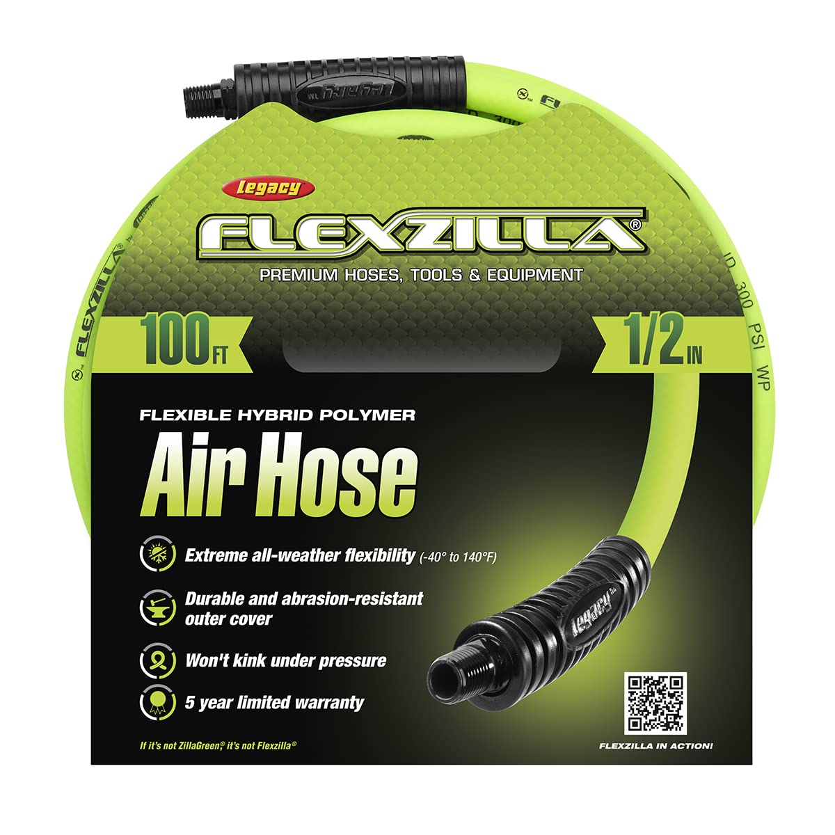 Flexzilla Air Hose, 1/2 in. x 100 ft., 3/8 in. MNPT Fittings, Heavy Duty, Lightweight, Hybrid, ZillaGreen - HFZ12100YW3