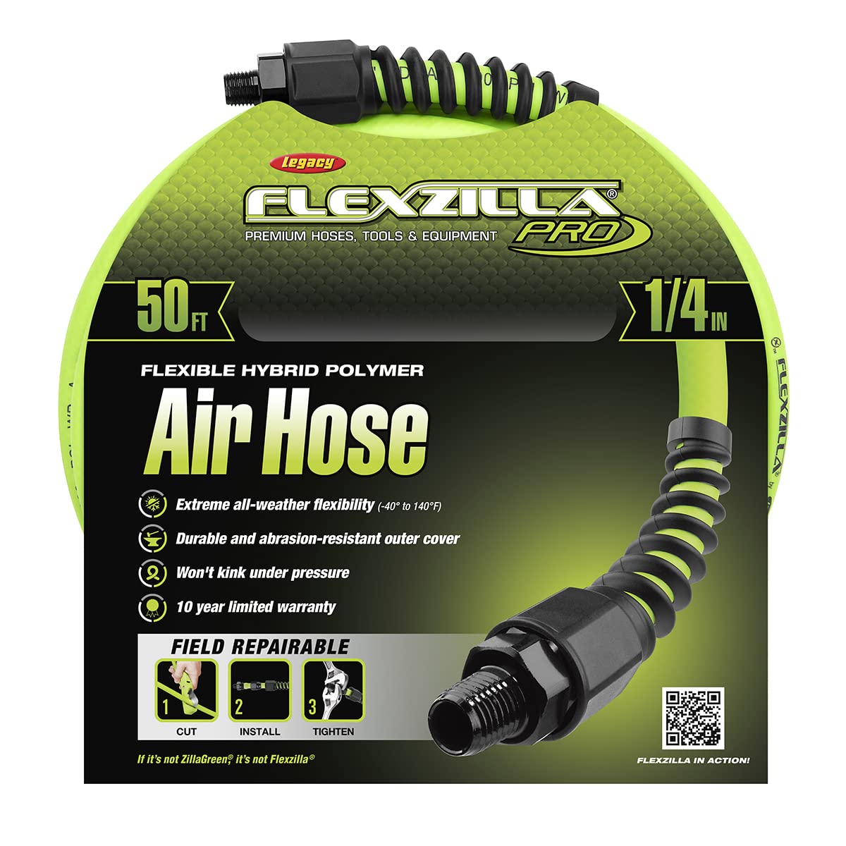 Flexzilla Pro Air Hose, 1/4 in. x 50 ft., Heavy Duty, Lightweight, Hybrid, ZillaGreen - HFZP1450YW2