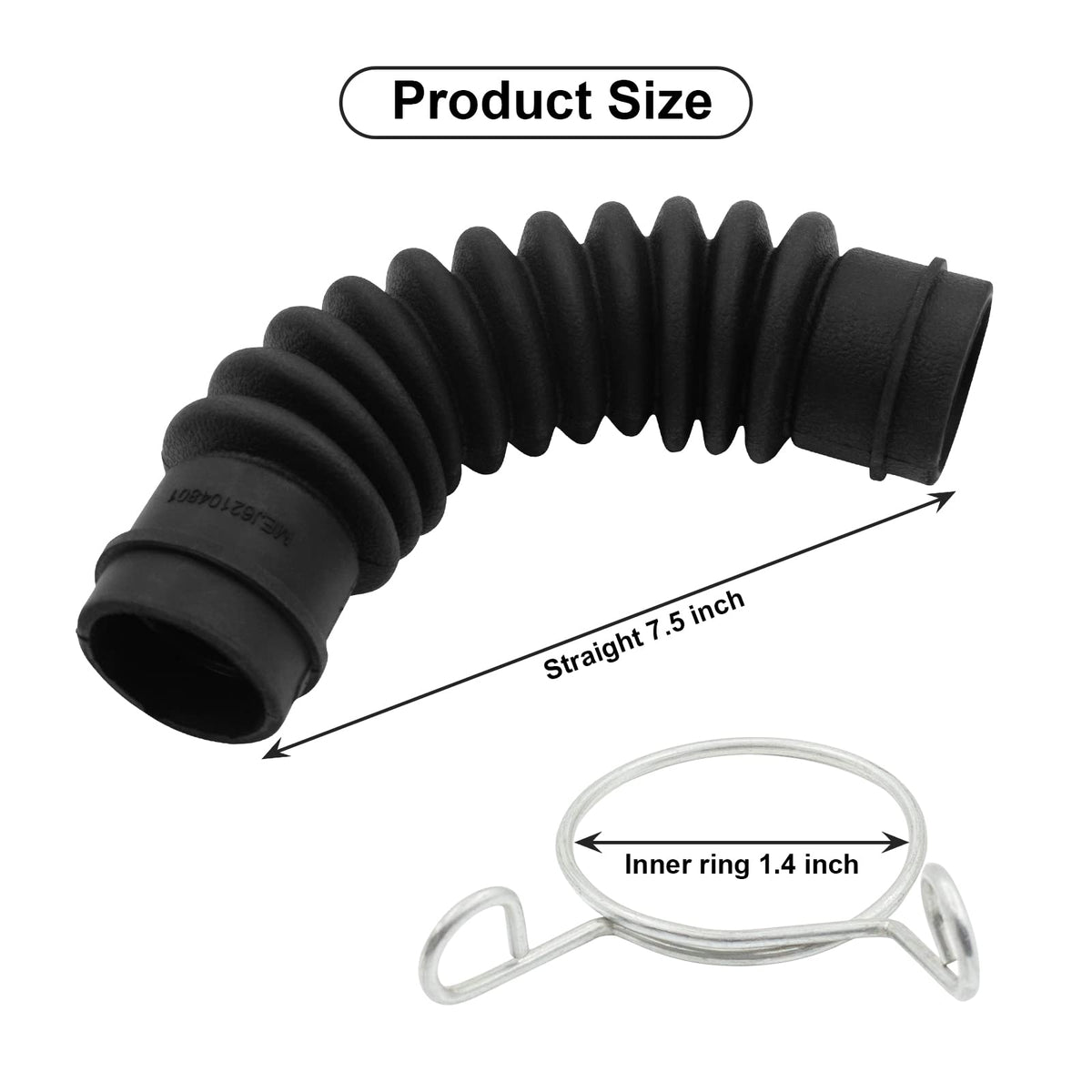 Q: What are the dimensions of the AEM73213001 drain hose?A: The AEM73213001 drain hose measures approximately 6.3 inches in length and 6.61 inches in width, making it a compact option for your washing machine needs.