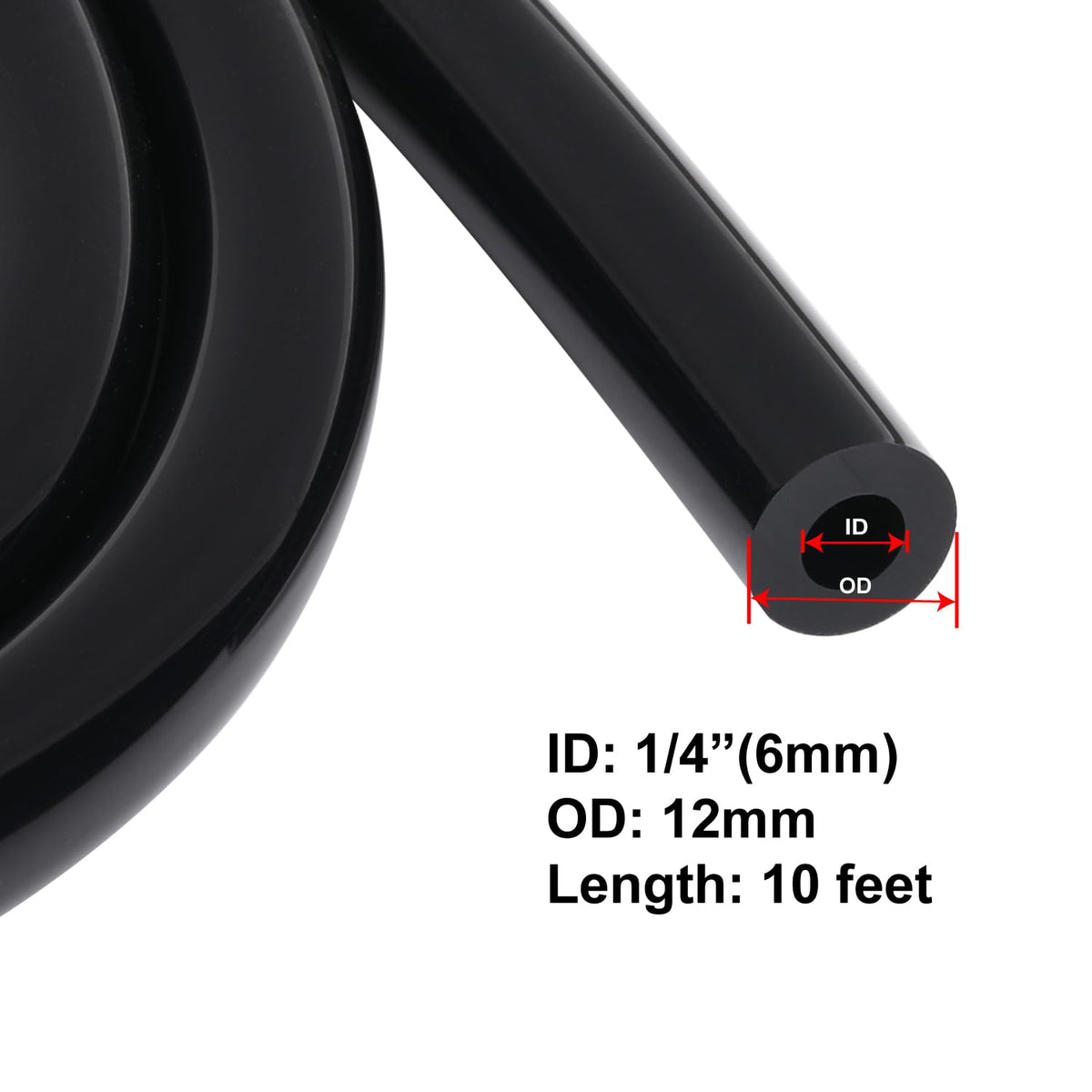 Podavelle 1/4'' 6mm ID Silicone Vacuum Hose Line Tubing 10FT Black 130 PSI Maximum Pressure