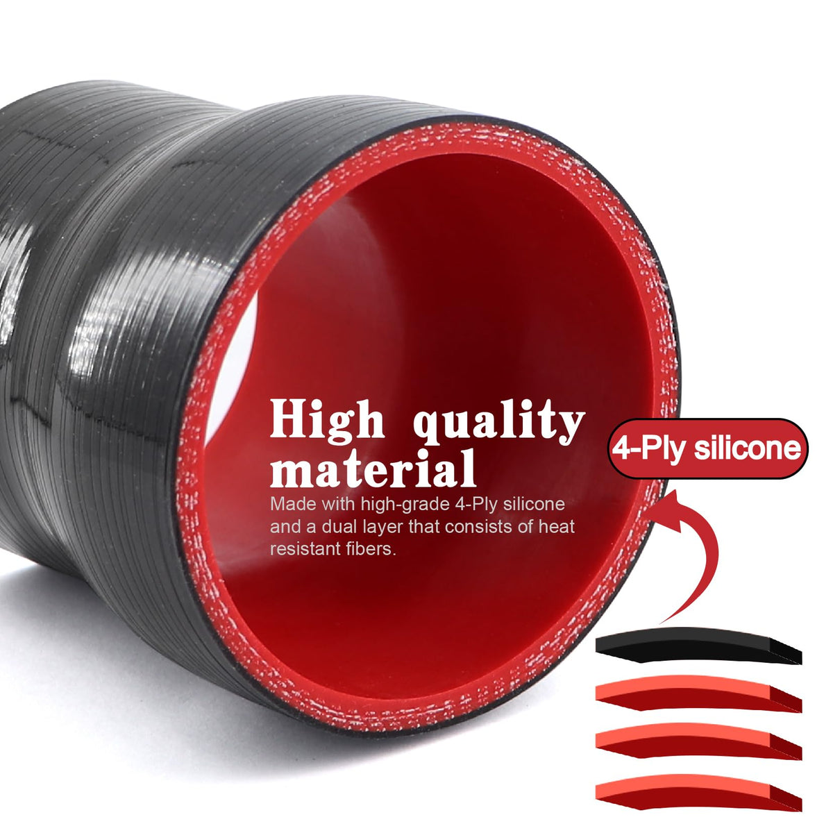 Taukealugs Straight Reducer Coupler Silicone Hose ID 2-1/2inch to 3-inch 4-Ply with Stainless Steel T-Bolt Clamp for Automotive