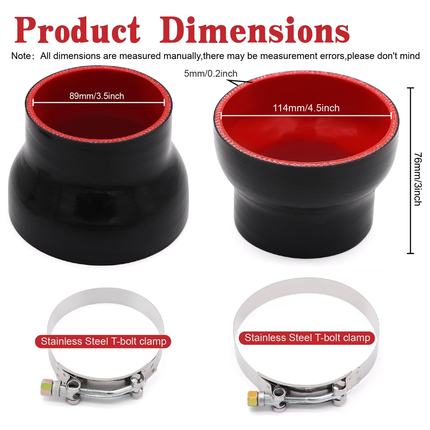 Taukealugs Straight Reducer Coupler Silicone Hose ID 3-1/2inch to 4-1/2inch 4-Ply with Stainless Steel T-Bolt Clamp for Turbo/Intercooler/Intake Piping