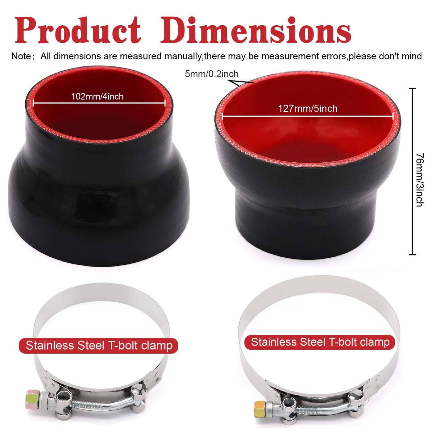 Taukealugs Straight Reducer Coupler Silicone Hose ID 4-inch to 5-inch 4-Ply with Stainless Steel T-Bolt Clamp for Automotive Tur