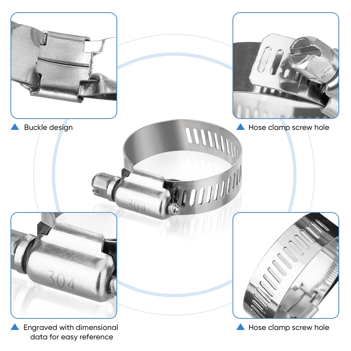 The TICONN hose repair clamps set is ideal for corrosive applications or ones with moisture or water exposure. The stainless steel finish prevents the hose from corroding. Perfect for plumbing repairs, this clamp provides a durable, low-maintenance solution. Stainless steel finish for lasting durability Features versatile use with hoses made from a variety of different materials Easy to install Prevents the hose from corroding Features a worm-drive design and punched rectangular perforations