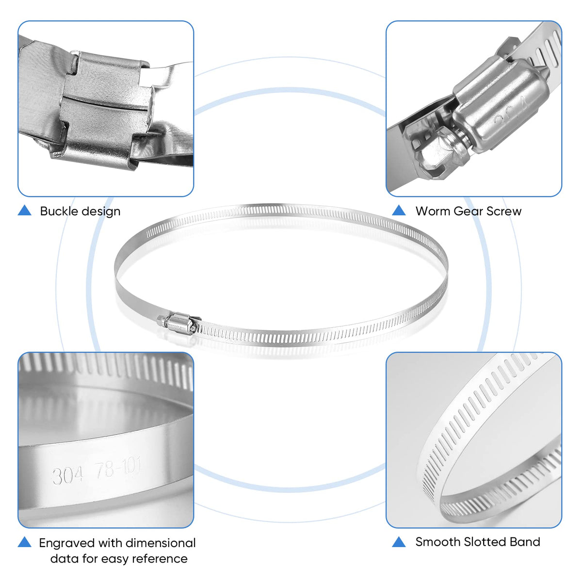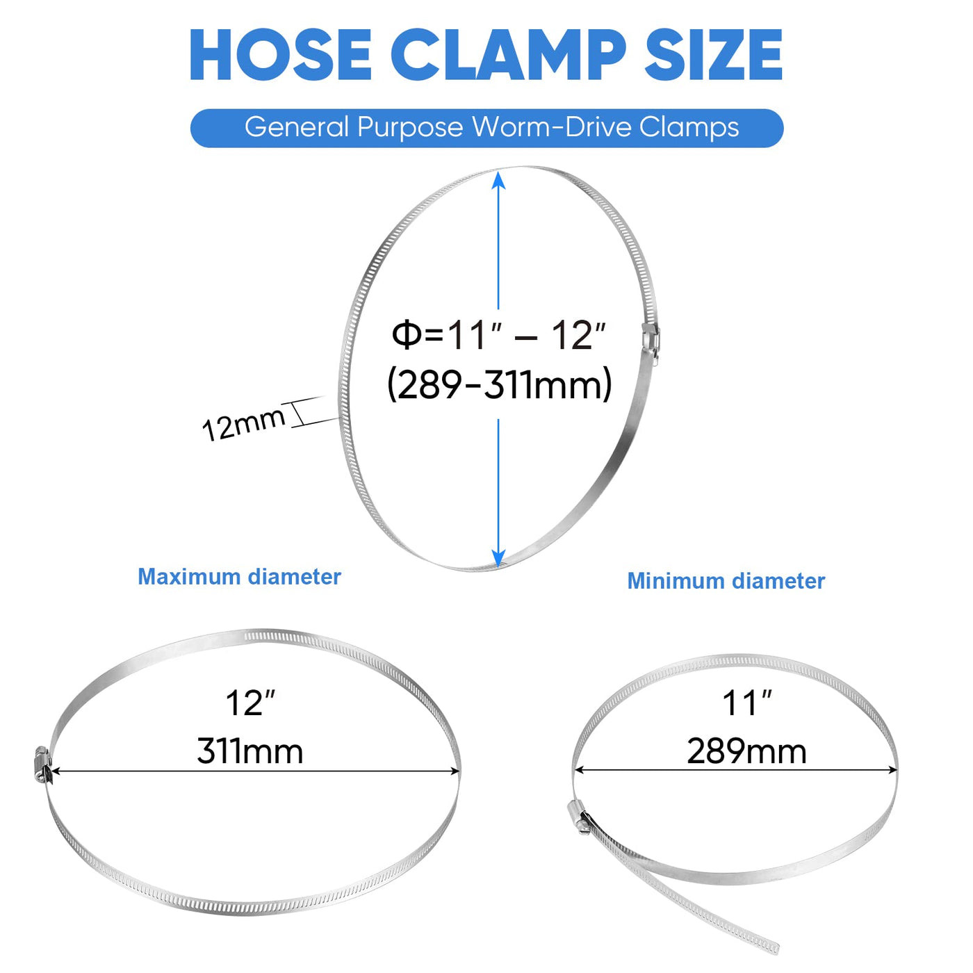Ticonn 6Pcs Hose Clamp Set - 12 ' ' 304 Stainless Steel Worm Gear Hose Clamps For Pipe, Intercooler, Plumbing, Tube And Fuel Lin