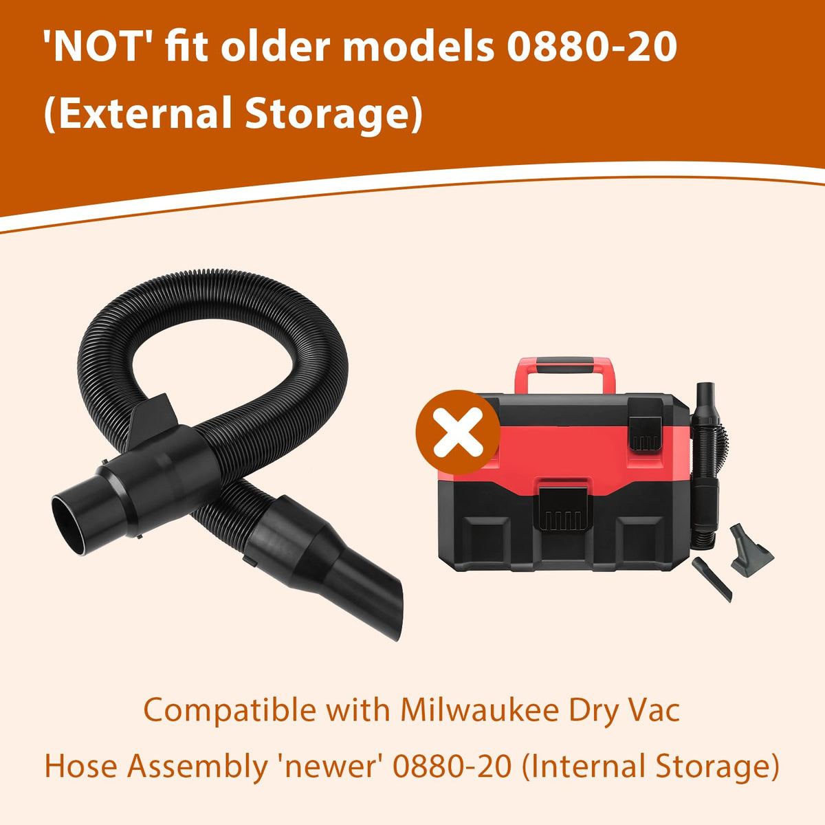 Q: Is the 14-37-0105 hose compatible with all Milwaukee Wet/Dry Vacuums?A: The 14-37-0105 hose is specifically designed for Milwaukee 18V/28V Wet/Dry Vacuums, including models 0780-20, 0880-20, and 0970-20. It is not compatible with models that feature outside hose storage.