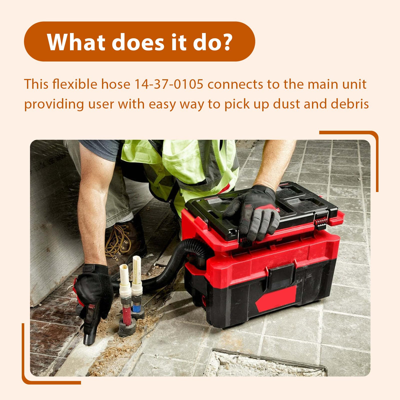 Q: What materials is the vacuum hose made from?A: The specific material details for the 14-37-0105 hose are not provided; however, it is designed for flexibility and durability to ensure effective operation with Milwaukee Wet/Dry Vacuums.