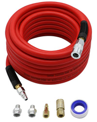 YOTOO Air Hose 1/2 in. x 50 ft, 300 PSI Hybrid Air Compressor Hose, Heavy Duty, Lightweight, Kink Resistant, All-Weather Flexibility with Bend Restrictors, 3/8' and 1/4' Air Fittings Kit, Red