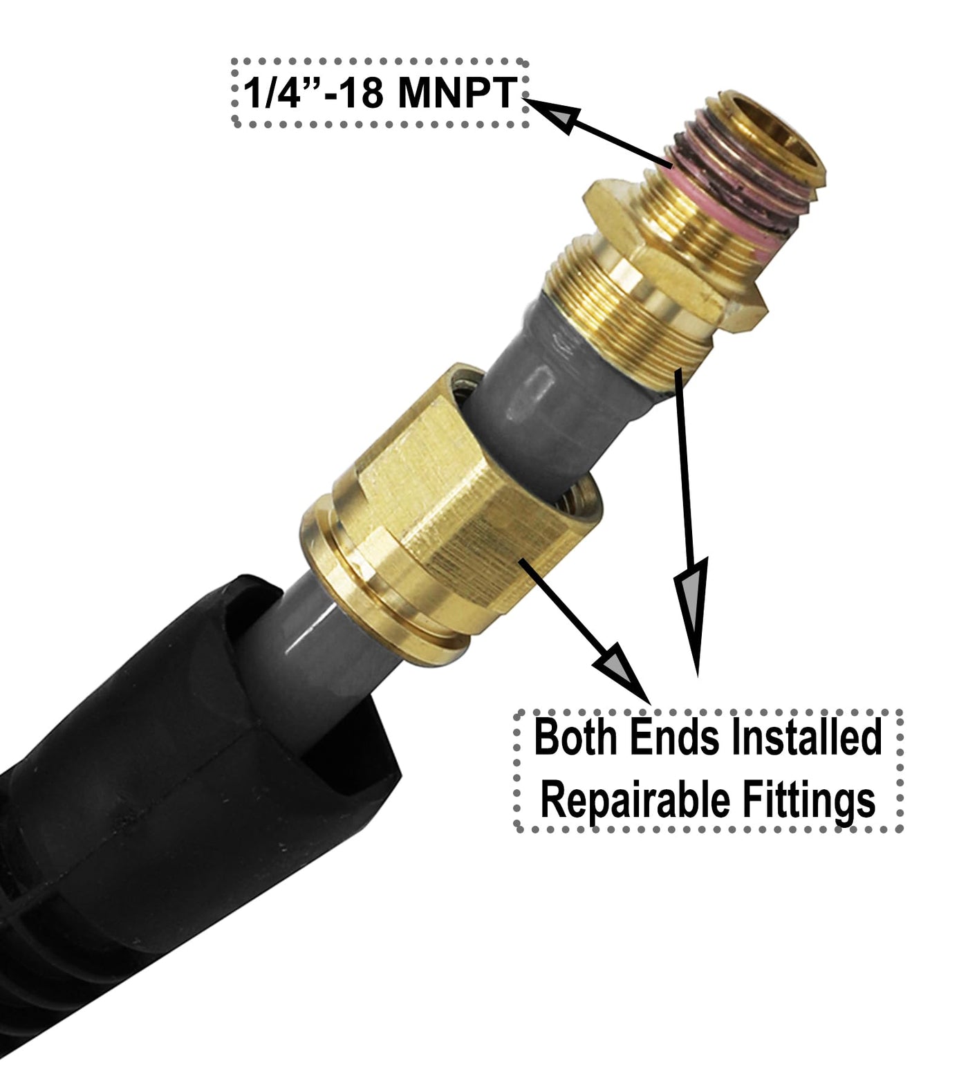 Q: Can the fittings on the YOTOO air hose be repaired if damaged?A: Yes, the YOTOO air hose comes with repairable fittings, allowing you to easily replace damaged fittings without needing to buy a new hose.