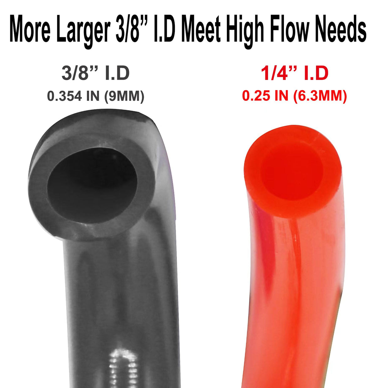 Q: What is the inner diameter of the YOTOO Polyurethane Recoil Air Hose?A: The YOTOO Polyurethane Recoil Air Hose has an inner diameter of 3/8 inches, making it suitable for high flow needs.