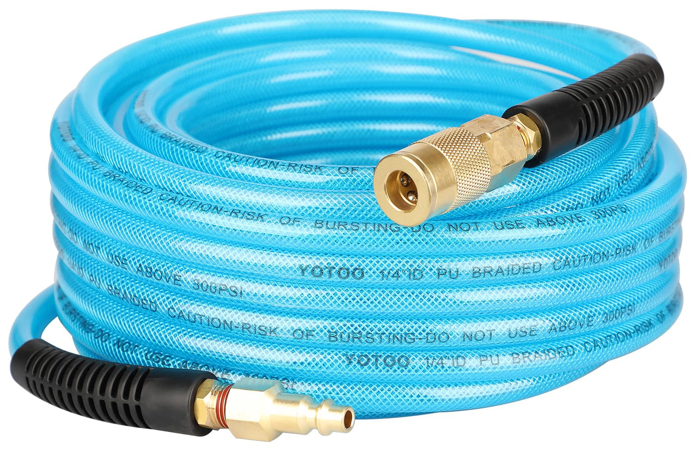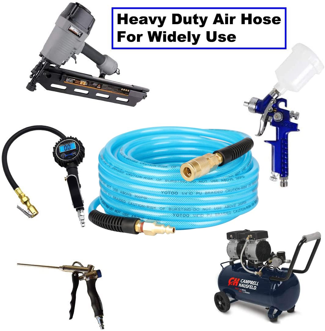 YOTOO Reinforced Polyurethane Air Hose 1/4' Inner Diameter by 50' Long, Flexible, Heavy Duty Air Compressor Hose with Bend Restrictor, 1/4' Swivel Industrial Quick Coupler and Plug, Blue