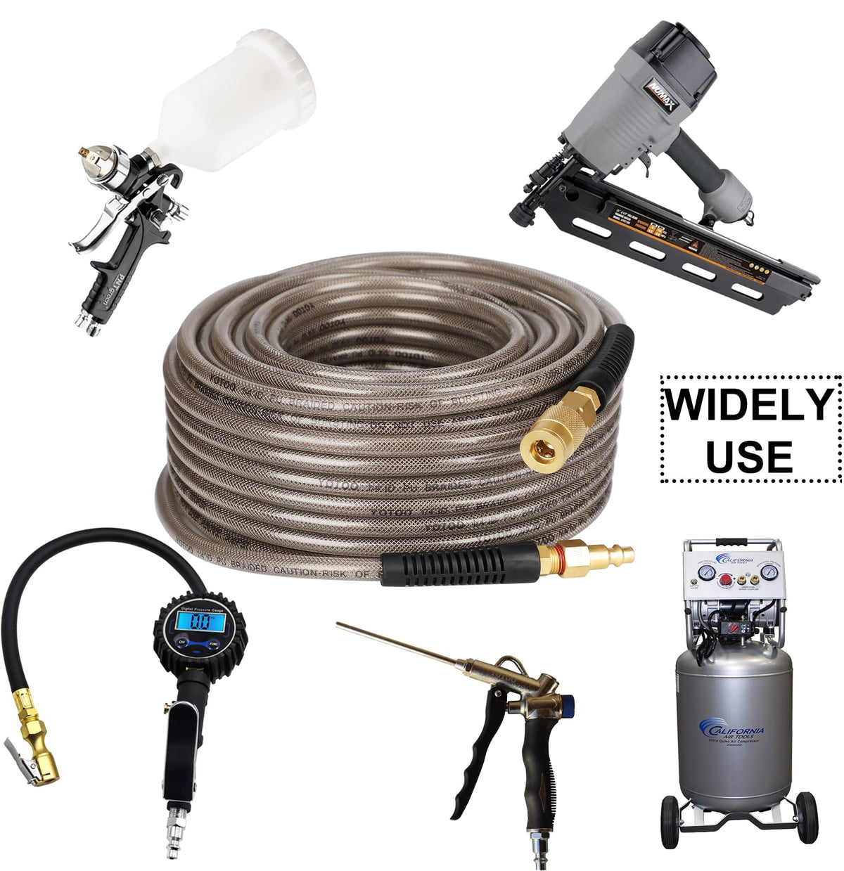 Q: What features enhance the longevity of this air hose?A: The YOTOO air hose includes bend restrictors that help reduce kinking, which increases the lifespan of the hose while maintaining optimal performance.