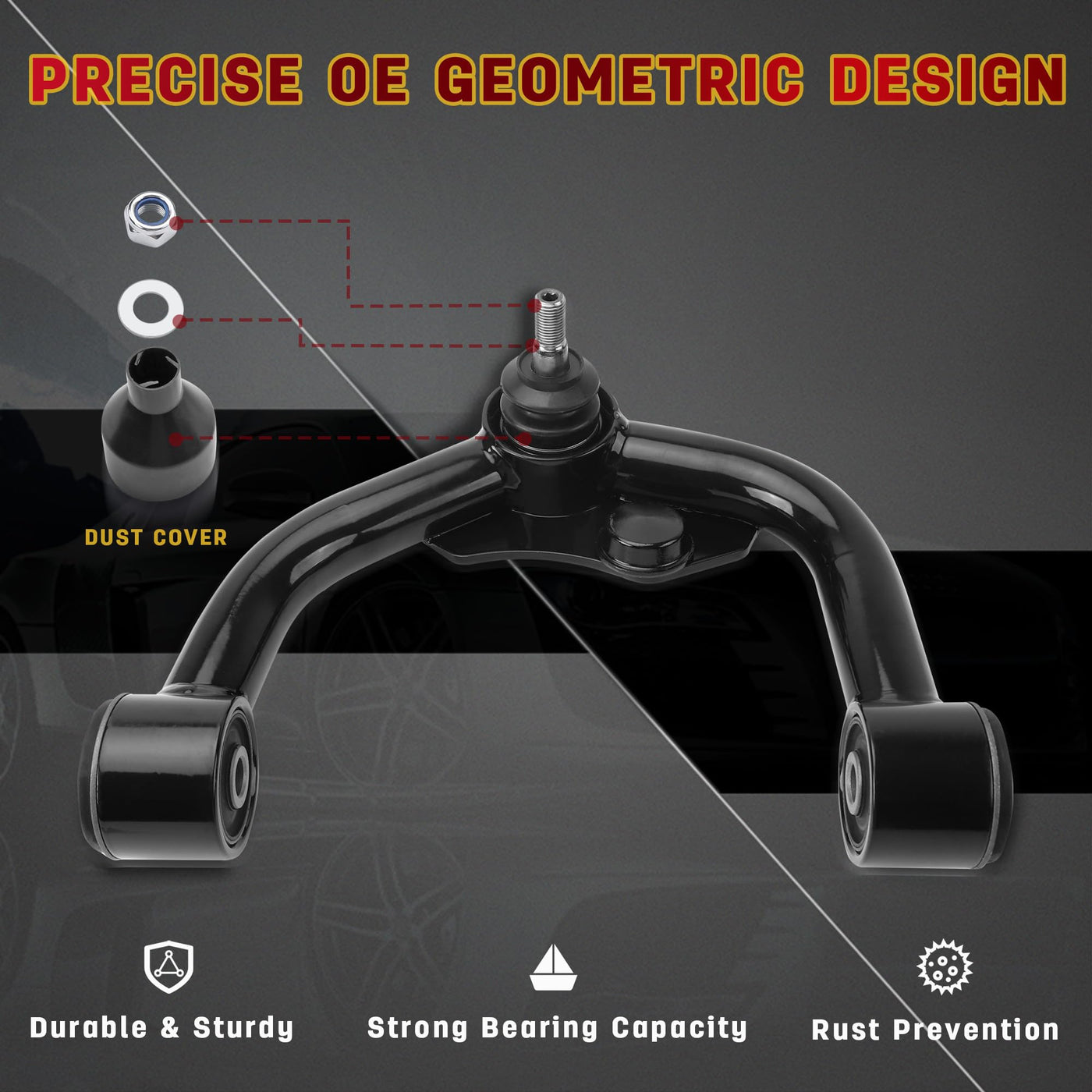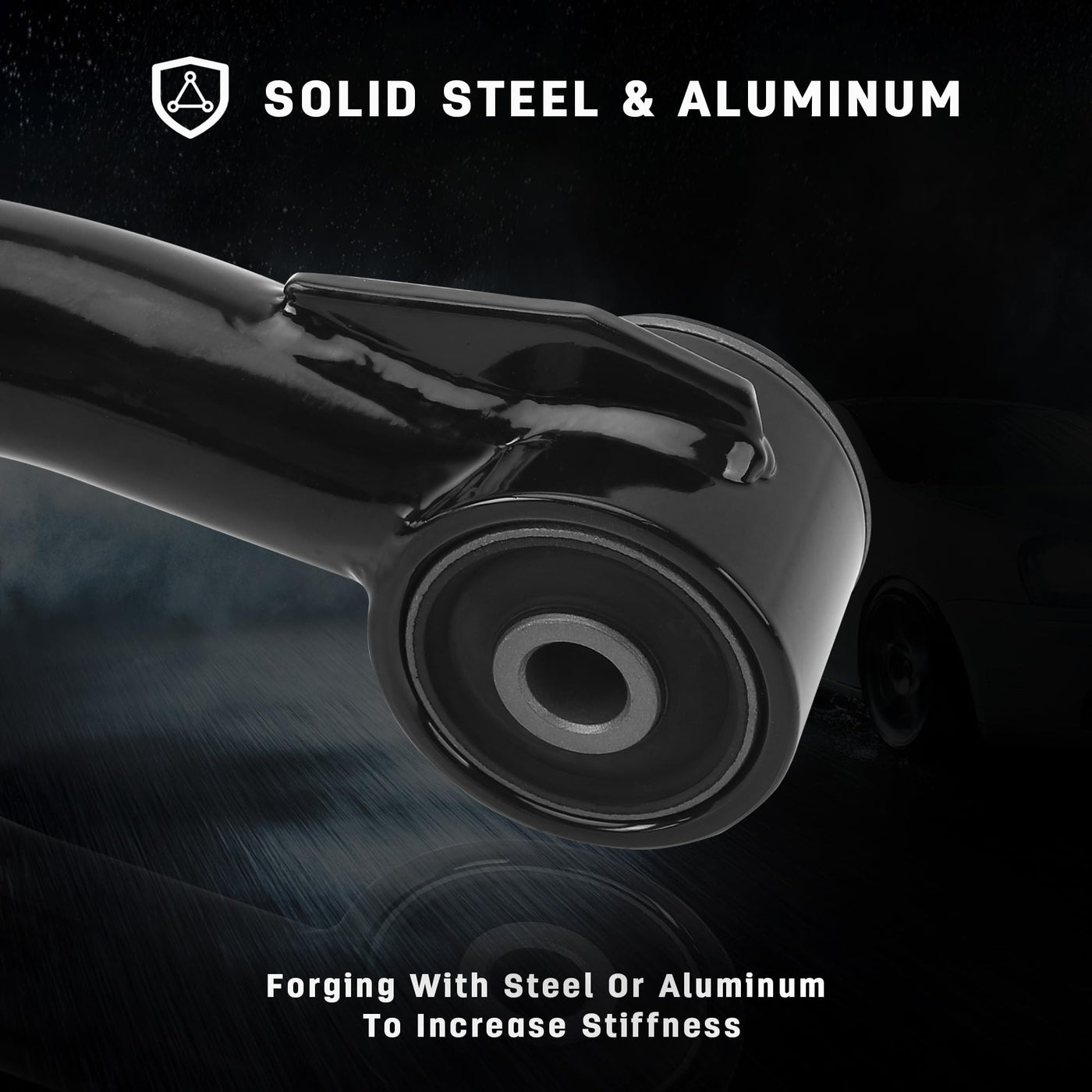 Q: What material are the control arms made of?A: The front upper control arms are constructed from high-strength alloy steel, ensuring superior strength and durability with a solid mounting bracket that eliminates welding weaknesses.