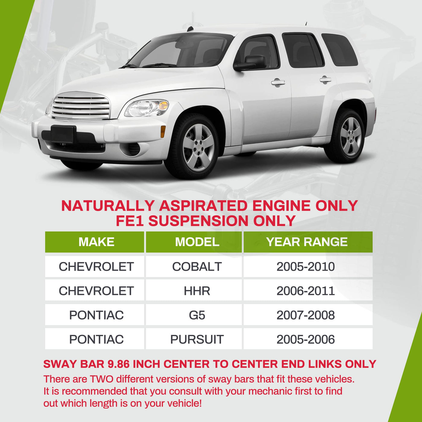 Q: What vehicles are compatible with the AUTOSAVER88 Front Suspension Kit?A: The AUTOSAVER88 Front Suspension Kit is compatible with 2005-2010 Chevrolet Cobalt, 2006-2011 Chevrolet HHR, 2007-2008 Pontiac G5, and 2005-2006 Pontiac Pursuit. Please confirm your vehicle details by VIN and check the fitment filter system before purchasing.