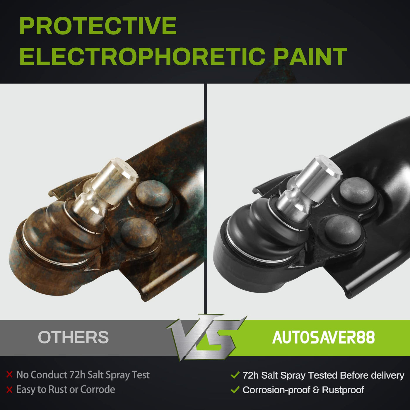 Q: What materials are used in the construction of this suspension kit?A: The AUTOSAVER88 Front Suspension Kit is made from high-strength alloy steel, which ensures stability during operation and promotes a longer service life through its E-coating that adds corrosion protection.