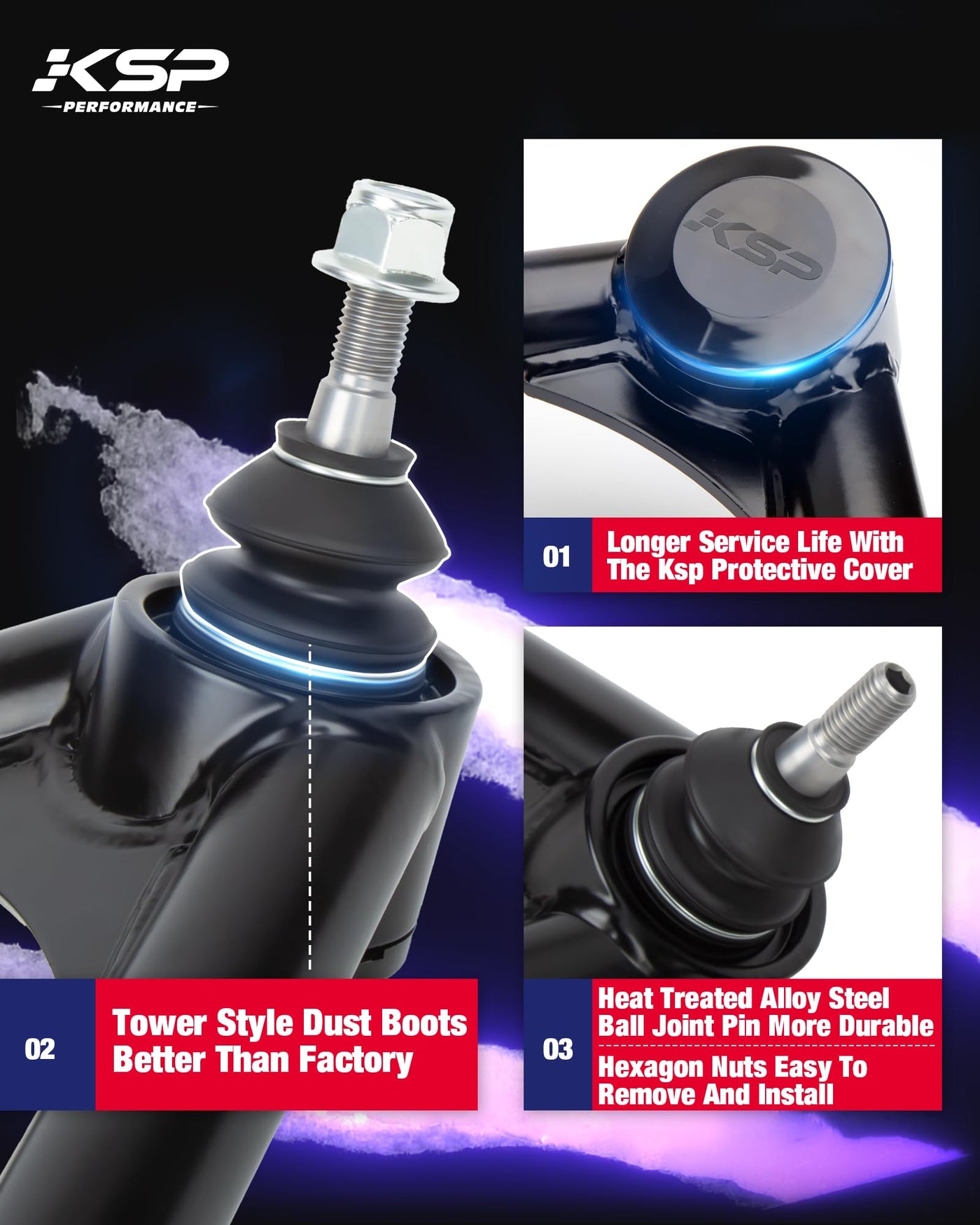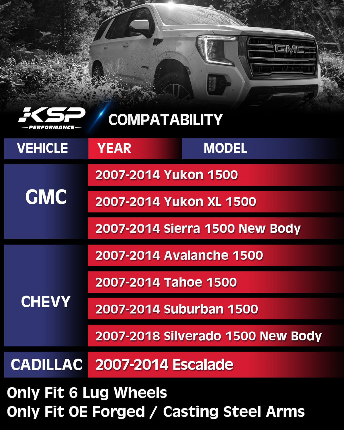 KSP Upper Control Arm 2-4'' lift for 07-16 Silverado Avalanche Tahoe, Sierra Yukon 6-Lug 2WD/4WD Factory Cast Steel arms, Tubula
