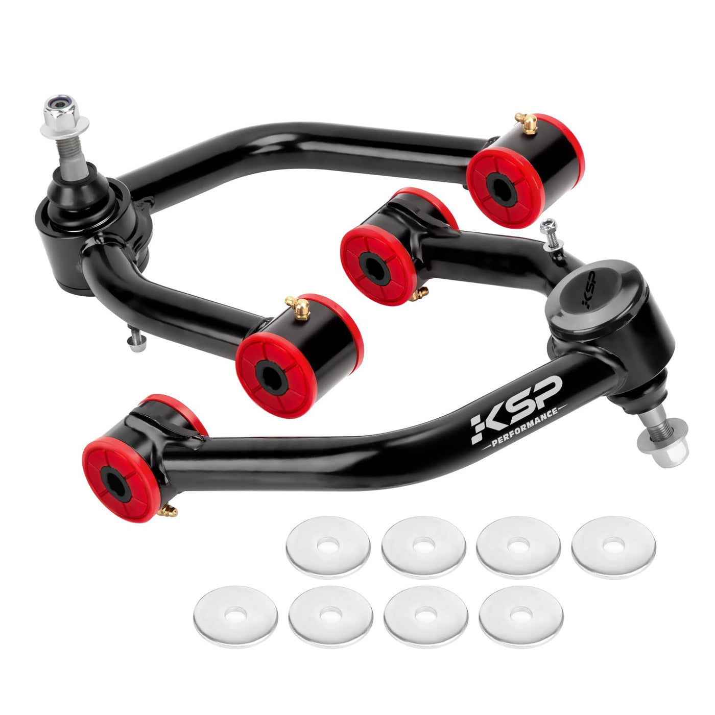 Q: How do I install the KSP Upper Control Arms?A: Professional installation is highly recommended for the KSP Upper Control Arms. While installation instructions are not included, it is important to measure your vehicle's front and rear heights to determine the appropriate lift needed. It is advisable to consult a professional mechanic for proper installation to avoid any issues.