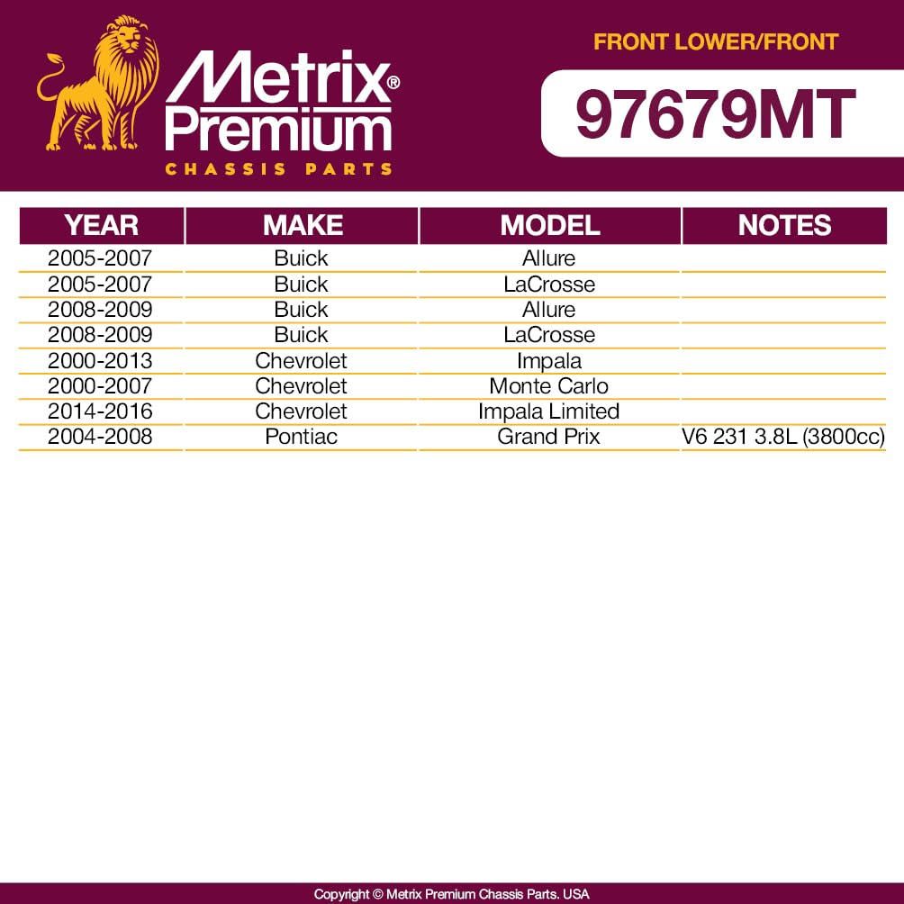 Metrix Premium Chassis Parts Control Arms are precision-engineered to meet or exceed OEM specifications. Our control arms provide seamless fitment, enhanced handling, and long-lasting support for European, Asian, and American passenger cars and lightweight commercial vehicles.At Metrix Premium Chassis Parts, we specialize in a comprehensive range of high-quality automotive parts, including control arms, ball joints, control arm bushings, sway bar bushings, stabilizer bar links, inner and outer tie rod ends, pitman arms, idler arms, drag links, center links, track bars, adjusting sleeves, brake rotors, and brake pads.Trusted by professionals and DIYers, our products are precision-designed for optimal performance, safety, and ease of installation. Our control arm lineup includes front and rear upper control arms, lower control arms, and control arm kits, with most models featuring pre-installed ball joints and control arm bushings. These components are pre-greased to reduce wear and extend lifespan, delivering smooth and stable handling.For complete front end rebuild projects, our catalog also offers inner tie rods, outer tie rod ends, and sway bar links, allowing you to restore or upgrade your vehicle's suspension and steering system with confidence.Key Features:-Precision Engineering: Most control arms with ball joints are designed for exact fitment, proper alignment, and enhanced steering control.-Durable Construction: Manufactured with high-strength, corrosion-resistant materials to withstand heavy loads and challenging driving conditions.-Comprehensive Compatibility: Products are crafted to seamlessly integrate with various vehicle systems, ensuring stability and support.-Ease of Installation: Designed to simplify installation and reduce downtime.Every product from Metrix Premium Chassis Parts undergoes rigorous testing to ensure superior quality, reliability, and performance.