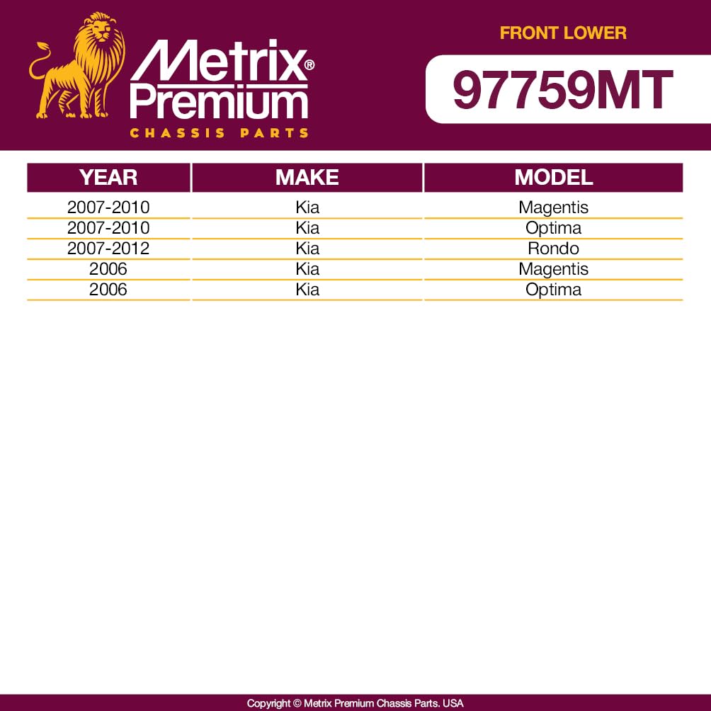 Metrix Premium Chassis Parts - 4 Pc Front Lower Control Arm & Front Lower Ball Joint Kit Fits 06-10 Kia Magentis, 06-10 Optima,