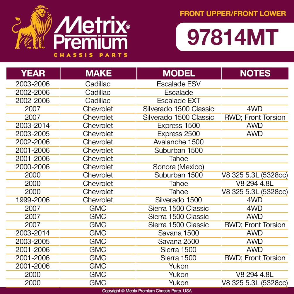 Metrix Premium Chassis Parts - 4 Pc Front Lower & Front Upper Control Arm Kit Fits 02-06 Cadillac Escalade, 02-06 Chevrolet Aval