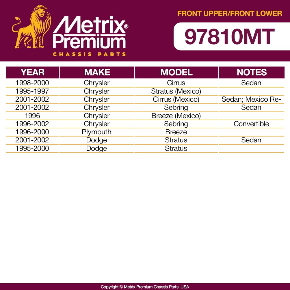 Metrix Premium Chassis Parts - 4 Pc Front Lower & Front Upper Control Arm Kit Fits 98-00 Chrysler Cirrus, 96-00 Plymouth Breeze,