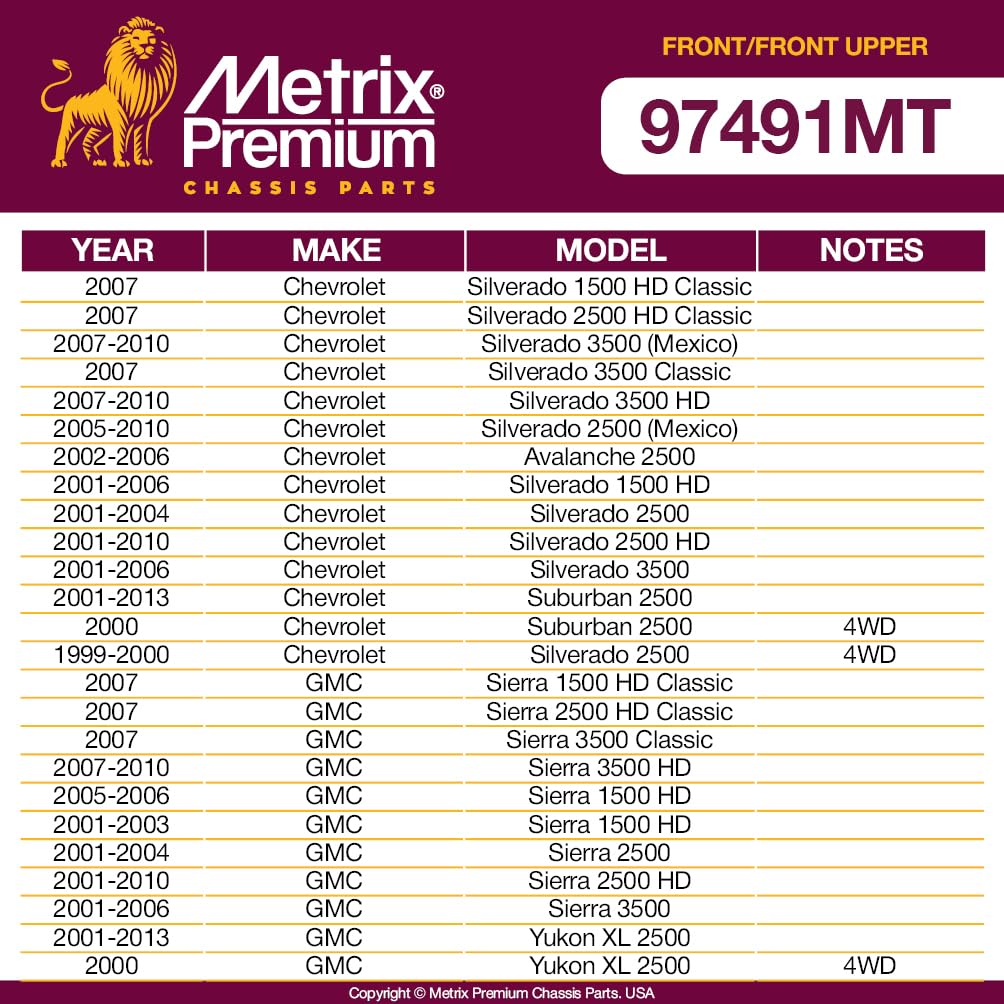 Metrix Premium Chassis Parts Control Arms are precision-engineered to meet or exceed OEM specifications. Our control arms provide seamless fitment, enhanced handling, and long-lasting support for European, Asian, and American passenger cars and lightweight commercial vehicles.At Metrix Premium Chassis Parts, we specialize in a comprehensive range of high-quality automotive parts, including control arms, ball joints, control arm bushings, sway bar bushings, stabilizer bar links, inner and outer tie rod ends, pitman arms, idler arms, drag links, center links, track bars, adjusting sleeves, brake rotors, and brake pads.Trusted by professionals and DIYers, our products are precision-designed for optimal performance, safety, and ease of installation. Our control arm lineup includes front and rear upper control arms, lower control arms, and control arm kits, with most models featuring pre-installed ball joints and control arm bushings. These components are pre-greased to reduce wear and extend lifespan, delivering smooth and stable handling.For complete front end rebuild projects, our catalog also offers inner tie rods, outer tie rod ends, and sway bar links, allowing you to restore or upgrade your vehicle's suspension and steering system with confidence.Key Features:-Precision Engineering: Most control arms with ball joints are designed for exact fitment, proper alignment, and enhanced steering control.-Durable Construction: Manufactured with high-strength, corrosion-resistant materials to withstand heavy loads and challenging driving conditions.-Comprehensive Compatibility: Products are crafted to seamlessly integrate with various vehicle systems, ensuring stability and support.-Ease of Installation: Designed to simplify installation and reduce downtime.Every product from Metrix Premium Chassis Parts undergoes rigorous testing to ensure superior quality, reliability, and performance.