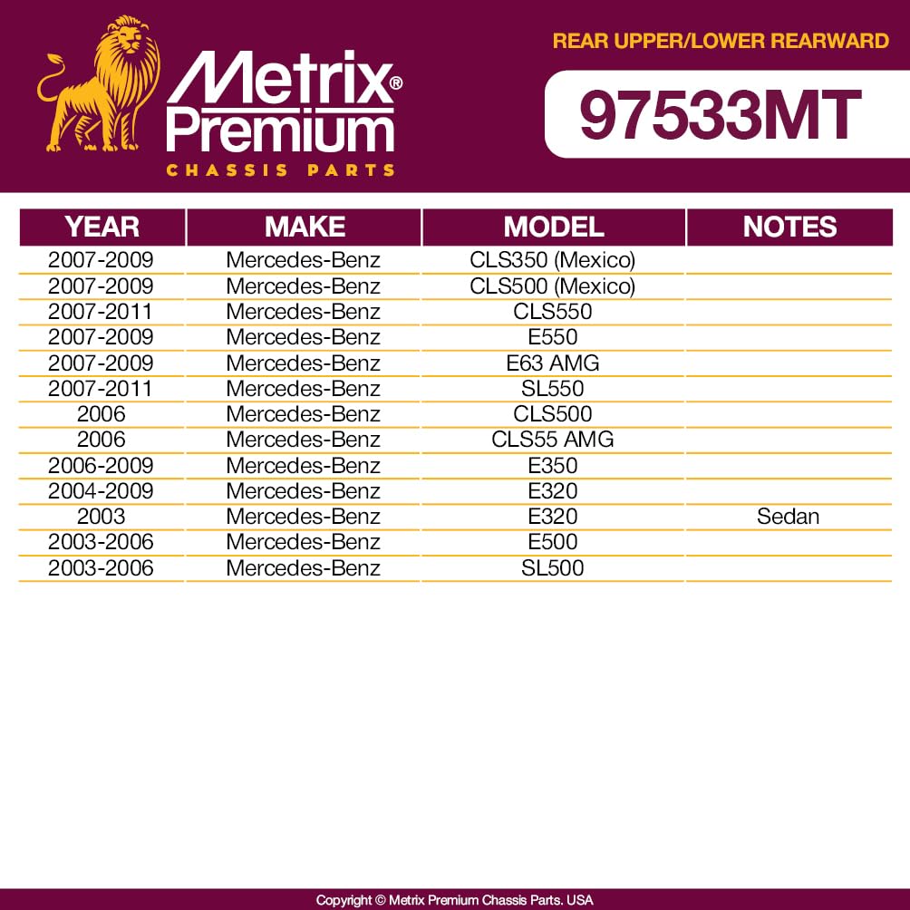 Metrix Premium Chassis Parts - 4 Pc L/R Rear Lower & Upper Rearward Control Arm Kit Fits 07-09 Mercedes-Benz Cls350 (Mexico), 06