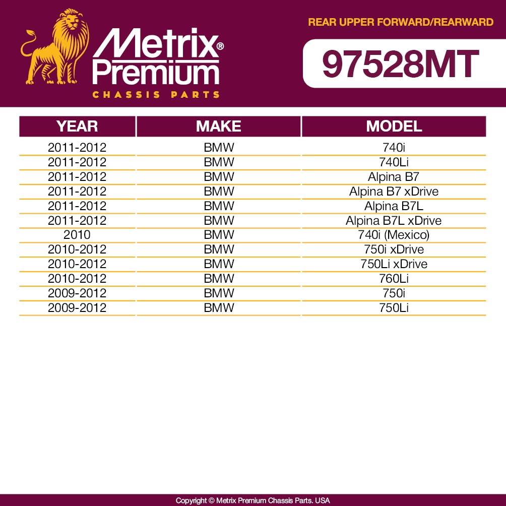 Metrix Premium Chassis Parts - 4 Pc L/R Rear Upper Forward & Rearward Control Arm Kit Fits 11-12 Bmw 740I, 11-12 740Li, 11-12 Al
