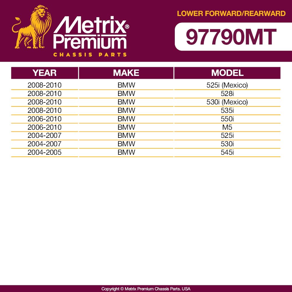 Metrix Premium Chassis Parts - 4 Pc Lower Forward & Rearward Control Arm Kit Fits 08-10 Bmw 525I (Mexico), 08-10 528I, 08-10 535