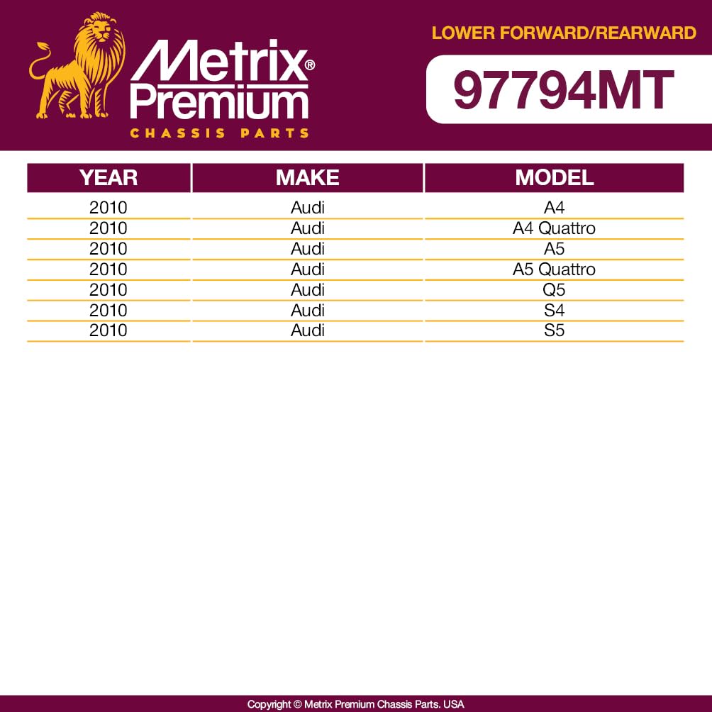 Metrix Premium Chassis Parts - 4 Pc Lower Forward & Rearward Control Arm Kit Fits 10 Audi A4, 10 A4 Quattro, 10 A5, 10 A5 Quattr