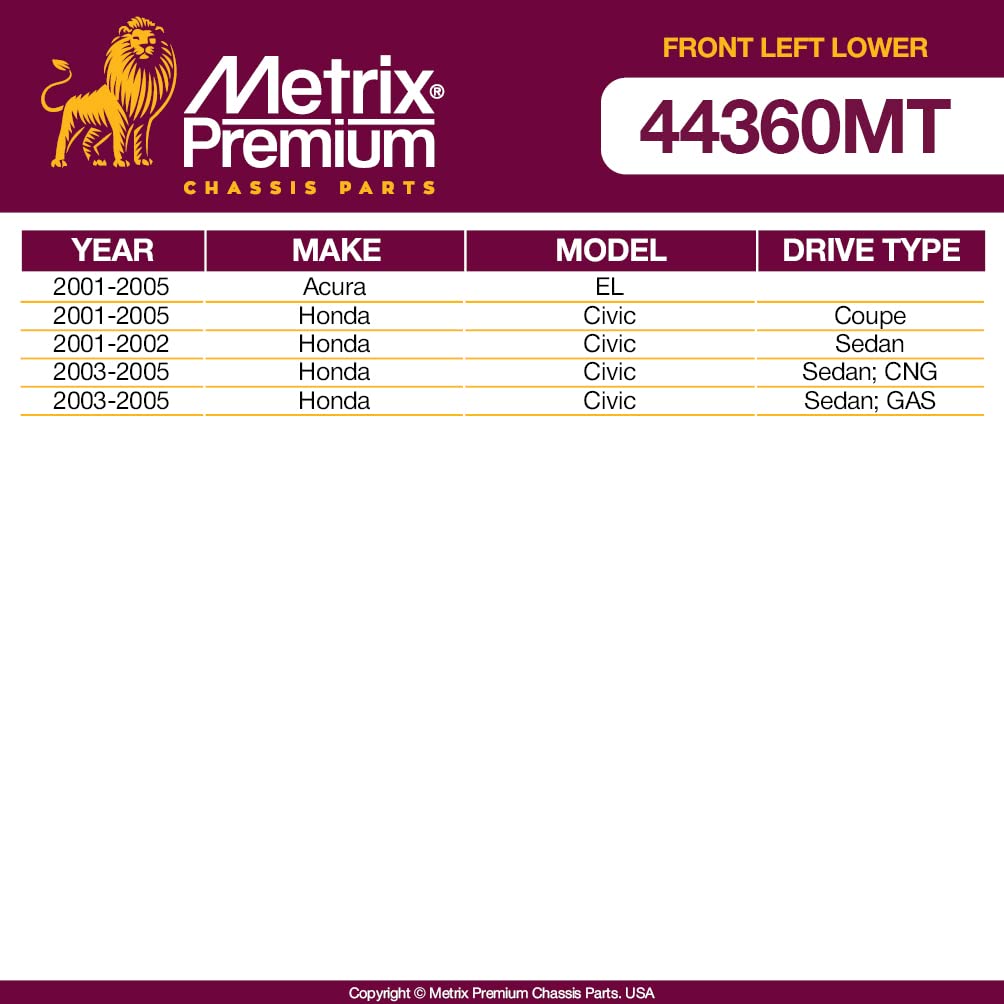 Metrix Premium Chassis Parts - Front Left Lower Control Arm Fits 2001-2005 Acura El, 2001-2005 Honda Civic, Replacement Rk640288